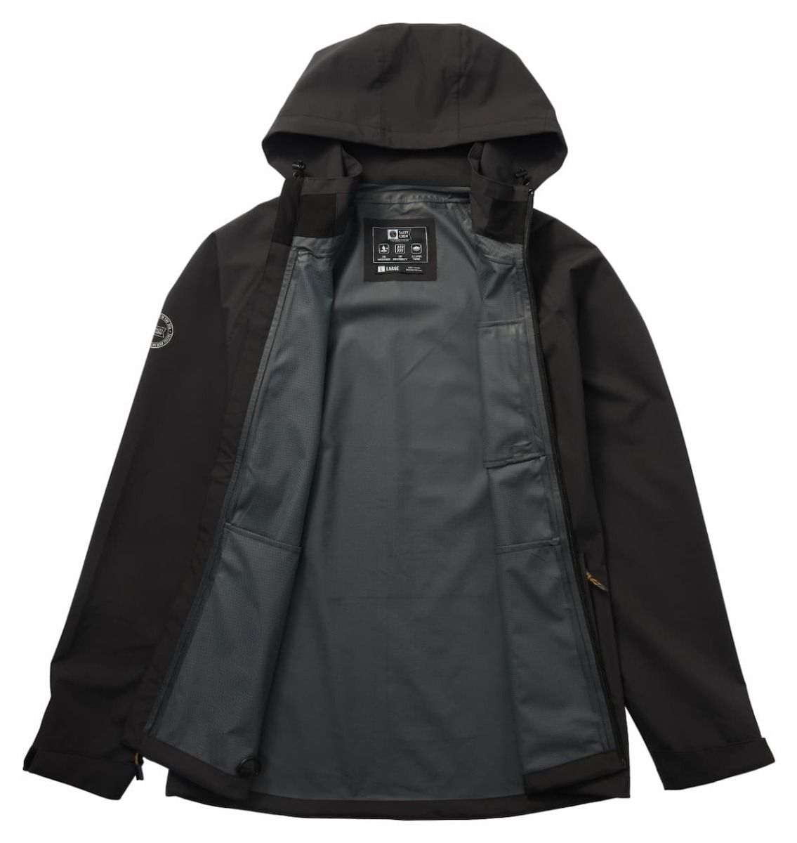 - Capucha con cuello alto y puños ajustables, brindando protección extra contra el viento y el agua.