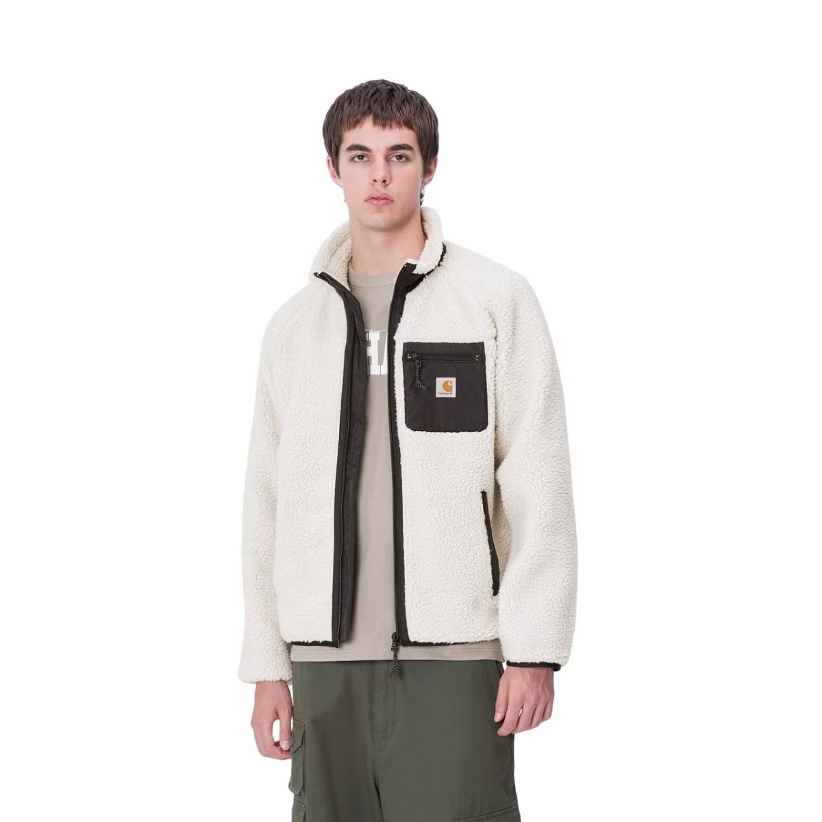 Este forro polar tipo chaqueta cuenta con cálido y suave borreguillo y forro de malla para mayor transpirabilidad, cierre frontal de cremallera completa, cuello medio, detalles en contraste de tafetán de nailon, bolsillos laterales, un bolsillo con cremallera en el pecho, junto con una etiqueta de Carhartt tejida en el bolsillo del pecho.