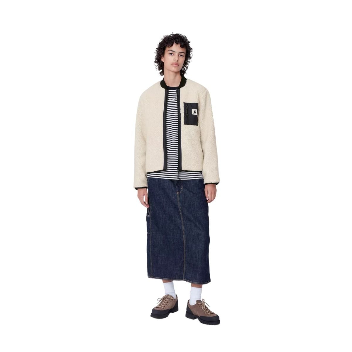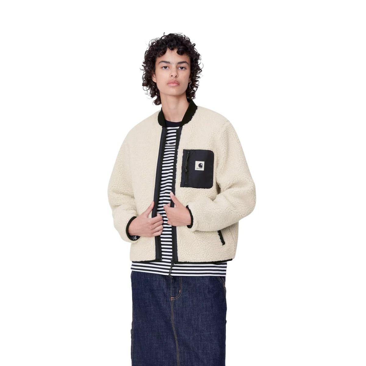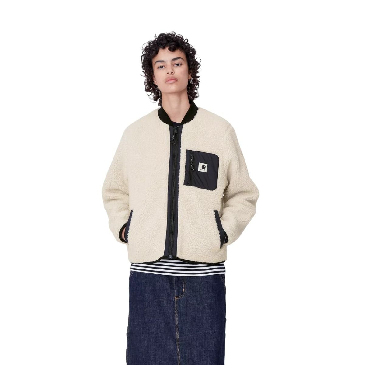 La Chaqueta polar Carhartt WIP W' Janet Liner color Moonbeam-Black para mujer te ayudará a para mantener el calor en los días más fríos sin perder un ápice de comodidad.