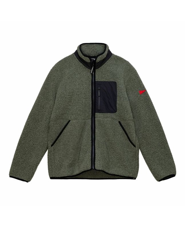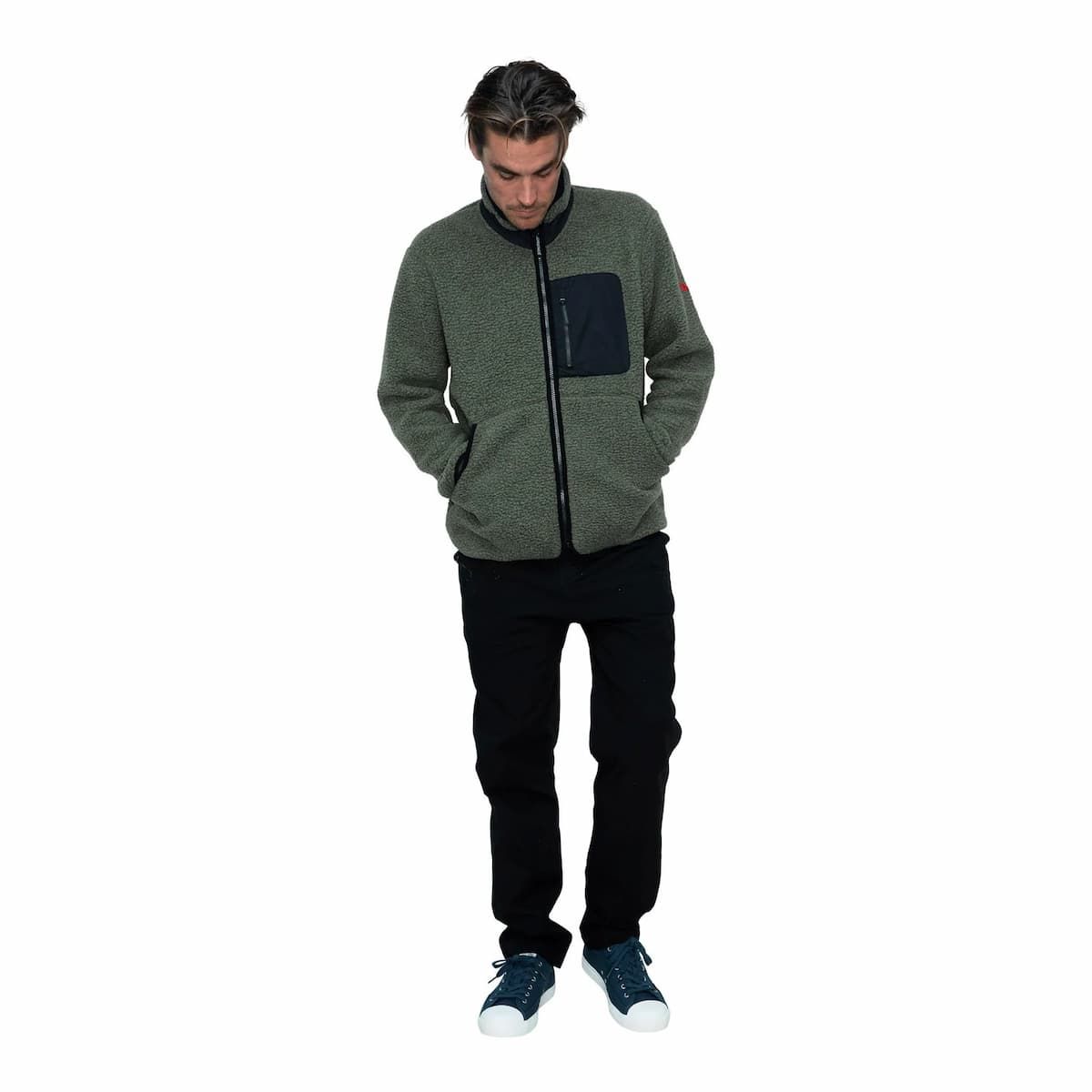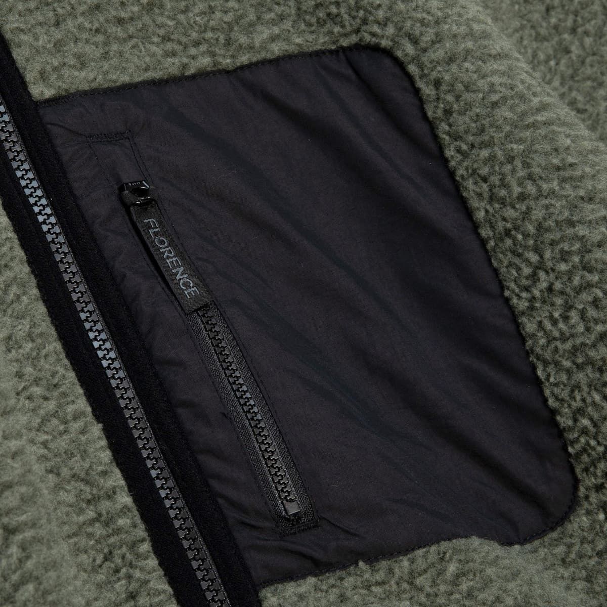 La chaqueta con forro polar para hombre High Pile Utility Fleece Jacket en verde (Thyme) de Florence Marine X está confeccionada con 58% poliéster reciclado y 42% poliéster.