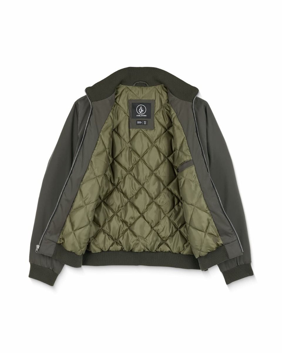 Incorpora cierre frontal con cremallera, bolsillos laterales y un bolsillo con cremallera en la manga, un guiño clásico al diseño bomber. Los acabados de canalé en cuello, puños y bajo mejoran el ajuste y ayudan a conservar el calor. El bordado Volcom en el pecho aporta un toque discreto y reconocible de la marca.