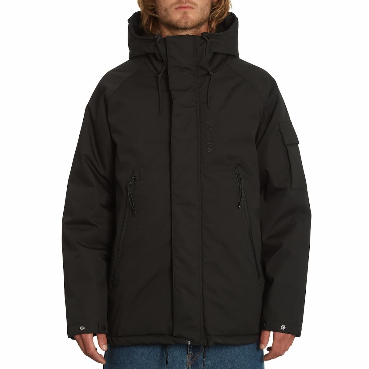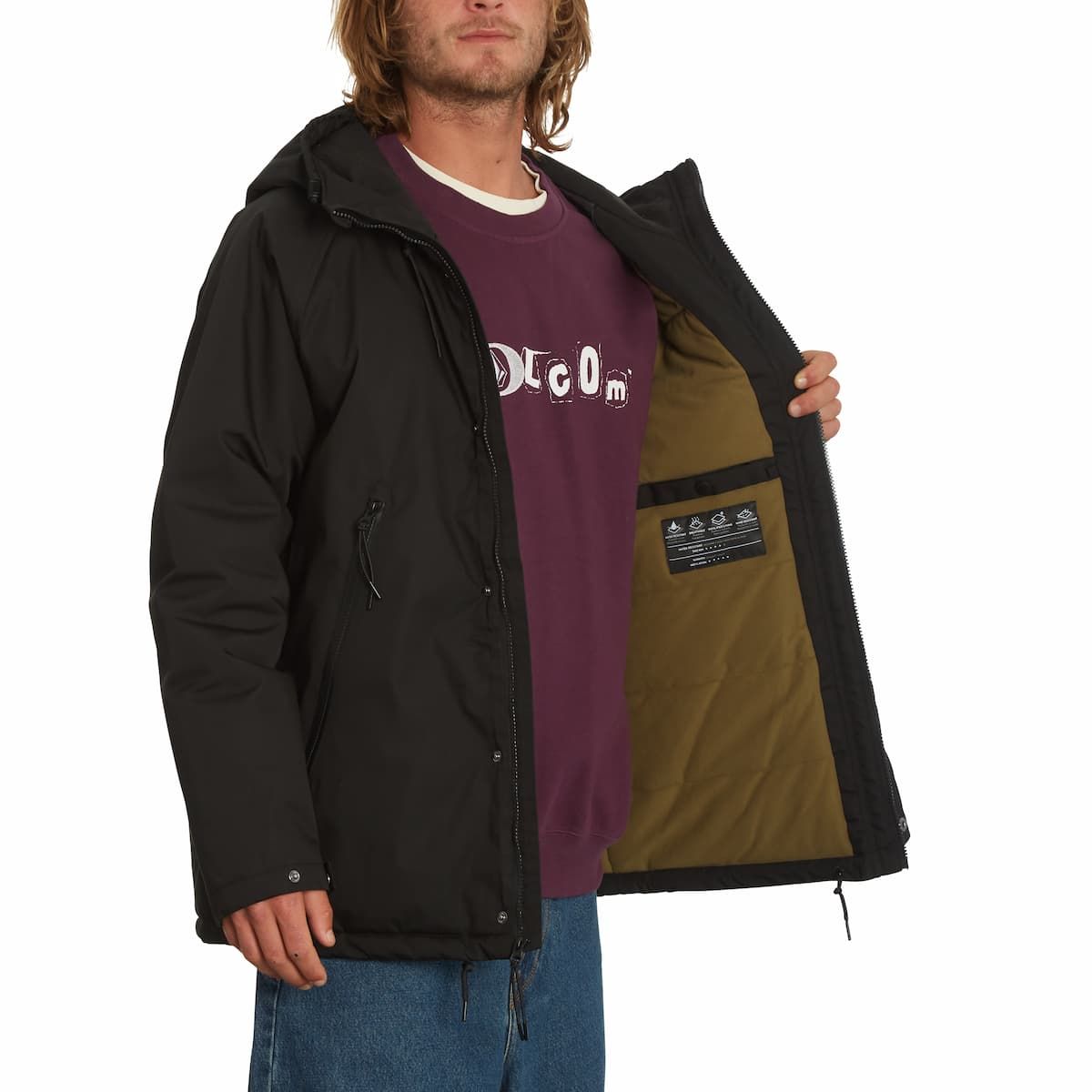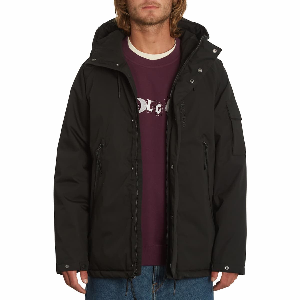 Esta cazadora impermeable de corte holgado cuenta con largo hasta la cintura, revestimiento resistente al agua de 5000mm con acabado Teflon EcoElite™ DWR sin PFC, interior forrado de tejido de punto cepillado, relleno de fibras de poliéster, capucha ajustable mediante cordón, cuello alto, cierre frontal de cremallera completa, solapa antiviento con cierre de botones a presión, dobladillo inferior ajustable, bolsillos laterales con cremallera, un bolsillo interior, un bolsillo de solapa en la manga izquierda y bordado Volcom en el lado izquierdo del pecho.