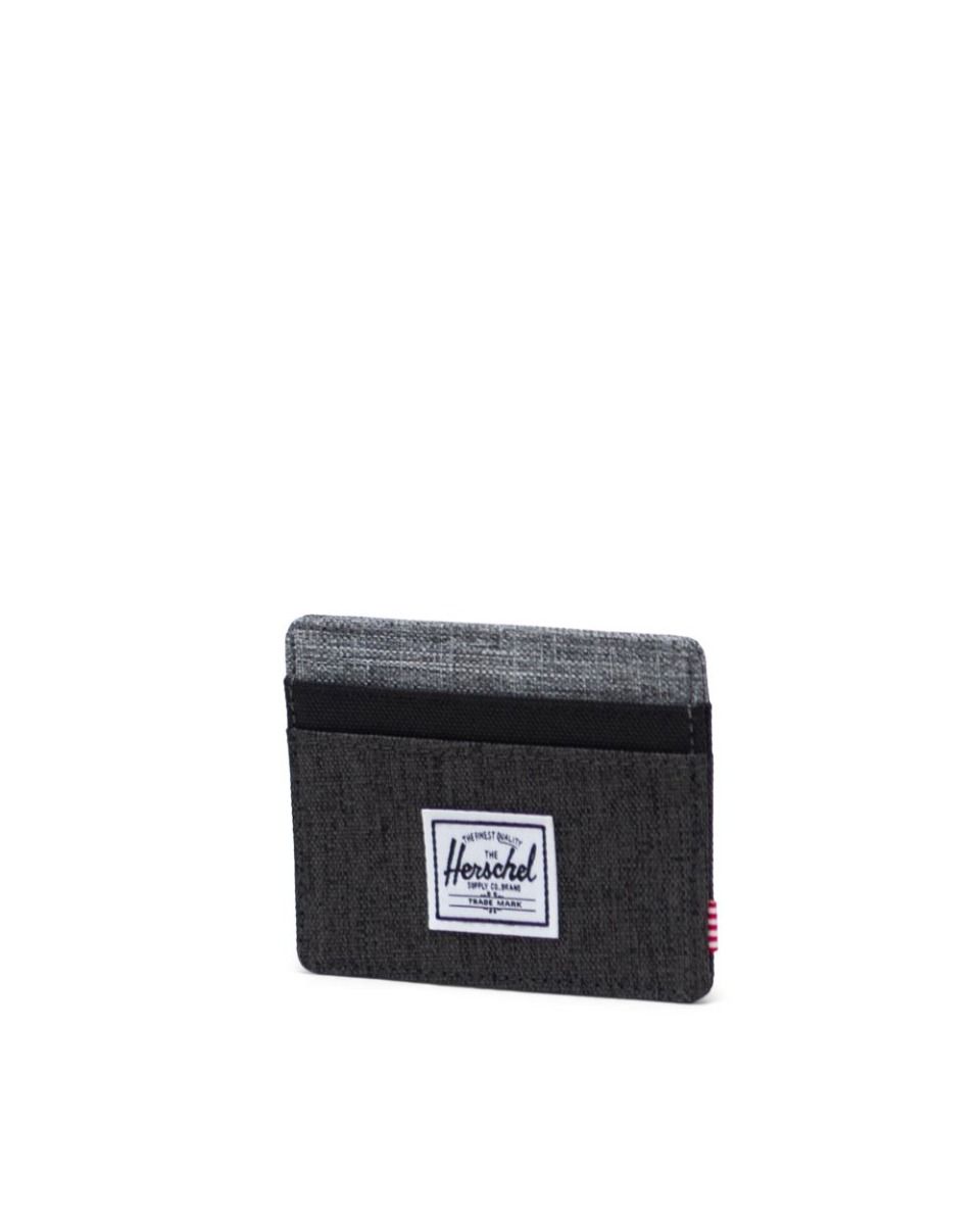 La cartera tarjetero Charlie RFID está disponible en color negro con gris (Black Crosshatch/Black/Raven Crosshatch) y azul (Moroccan Blue).