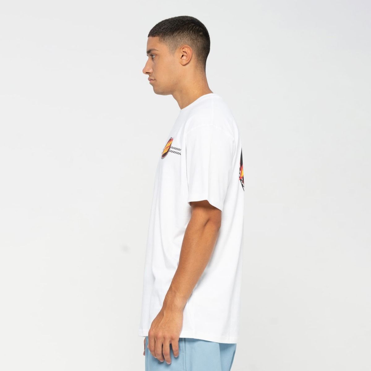 La camiseta de manga corta para hombre Check Ringed Flamed Dot en blanco (White) de Santa Cruz ha sido confeccionada con algodón 100% (200g/m2).