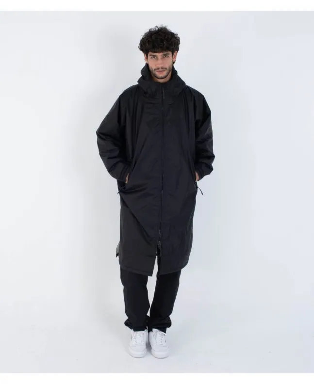 Chubasquero largo tipo poncho cambiador impermeable con forro sherpa para mantenerte seco y abrigado tras surfear. Diseño técnico y cómodo de Hurley.