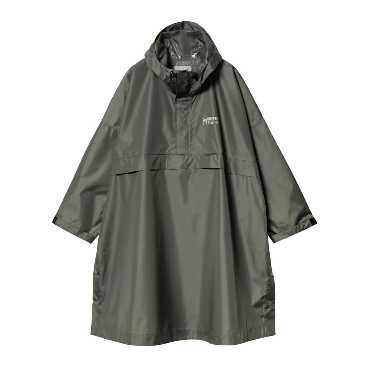 El poncho de lluvia para hombre y mujerĀ Tour Packable Rain PonchoĀ en tono verde con detalles reflectantes (Smoke Green-Reflective) de Carhartt WIP es una prenda funcional y versĆ”til diseƱada para protegerte de la lluvia sin sacrificar comodidad ni estilo.Ā