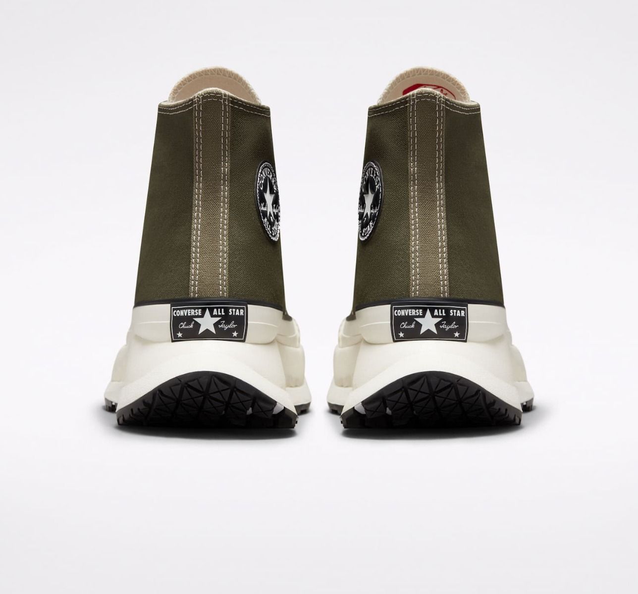 Las zapatillas de plataforma Chuck 70 AT-CX Hi verdes Unisex tienen la estrella Converse All Star en el talón.