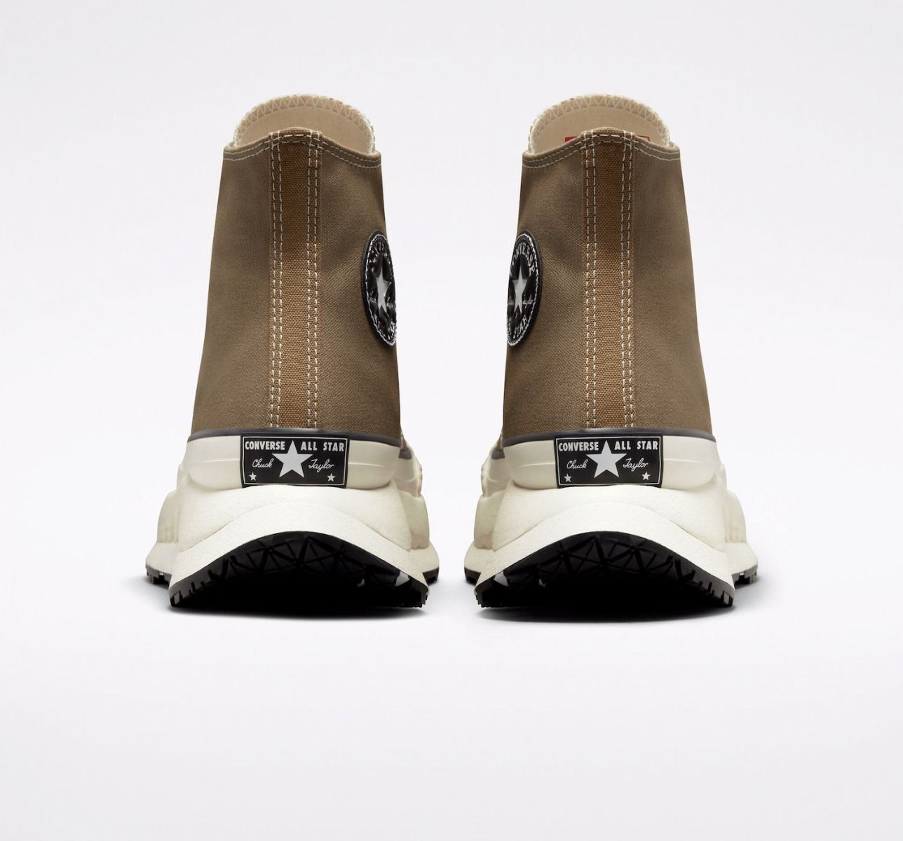 Las zapatillas de plataforma Chuck 70 AT-CX Hi color caqui Unisex tienen la estrella Converse All Star en el talón.
