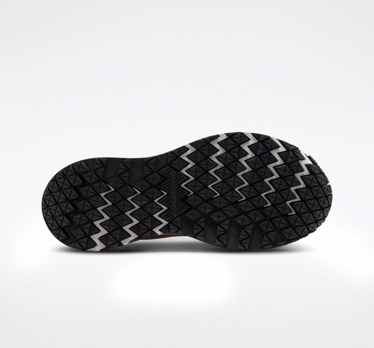 Las Chuck 70 AT-CX combinan detalles clásicos de las Chuck 70 como el parche de estrella en el tobillo, los dos agujeros con borde metálico en la parte inferior y cordones de algodón, con una suela exterior de estilo futurista y agarre en forma de diamante para lograr mayor tracción.