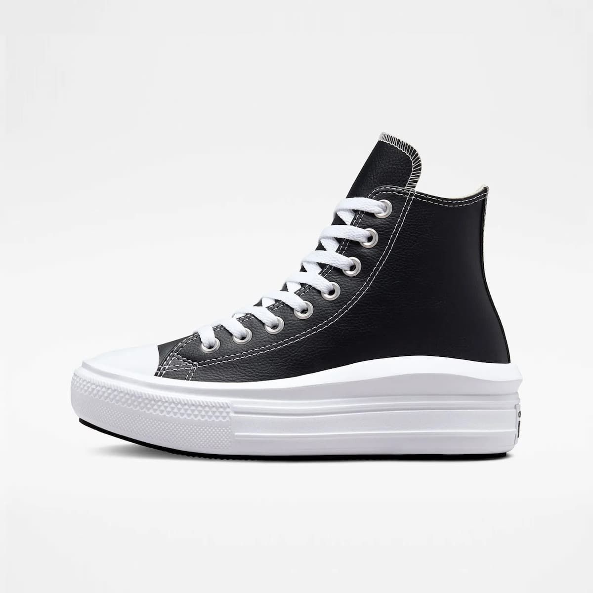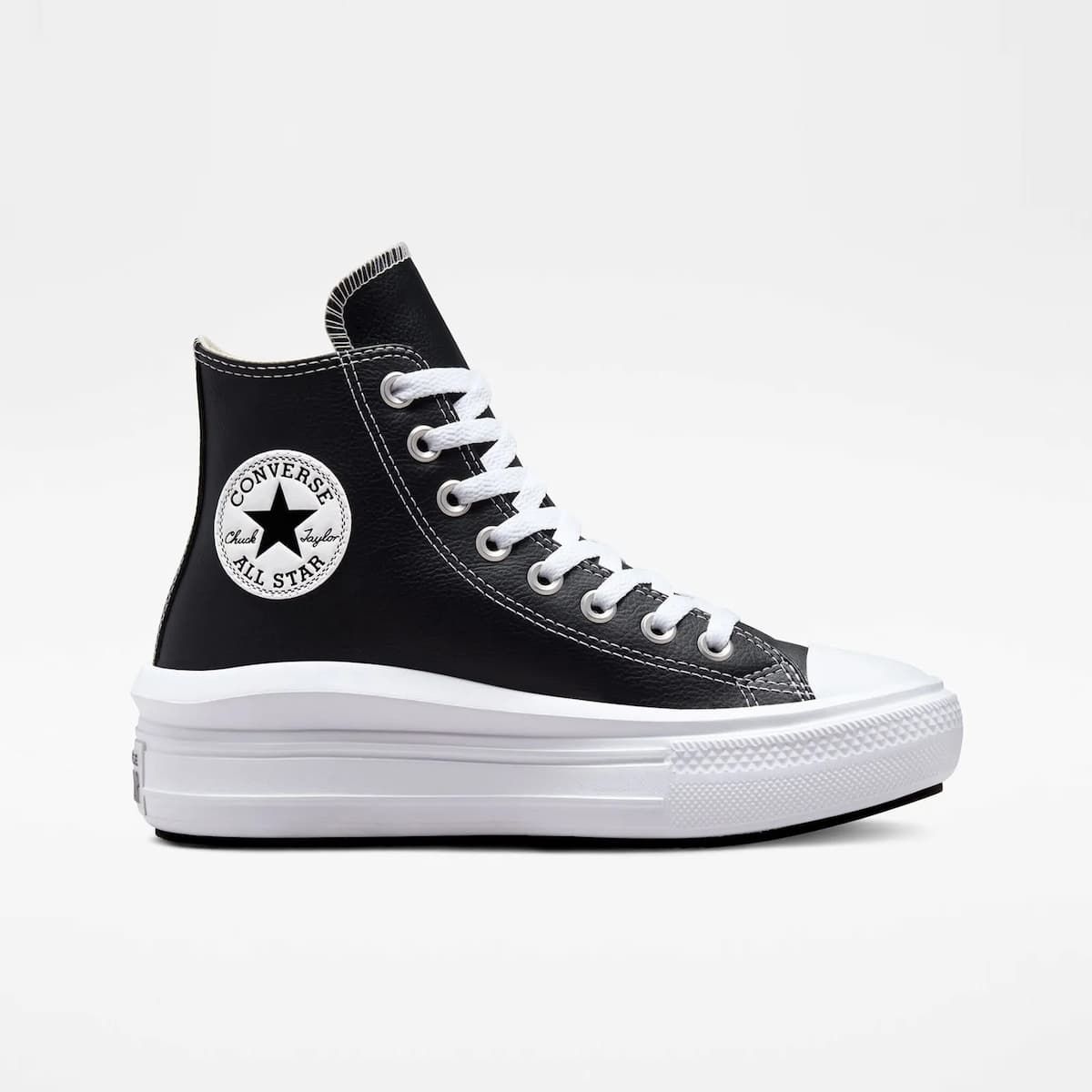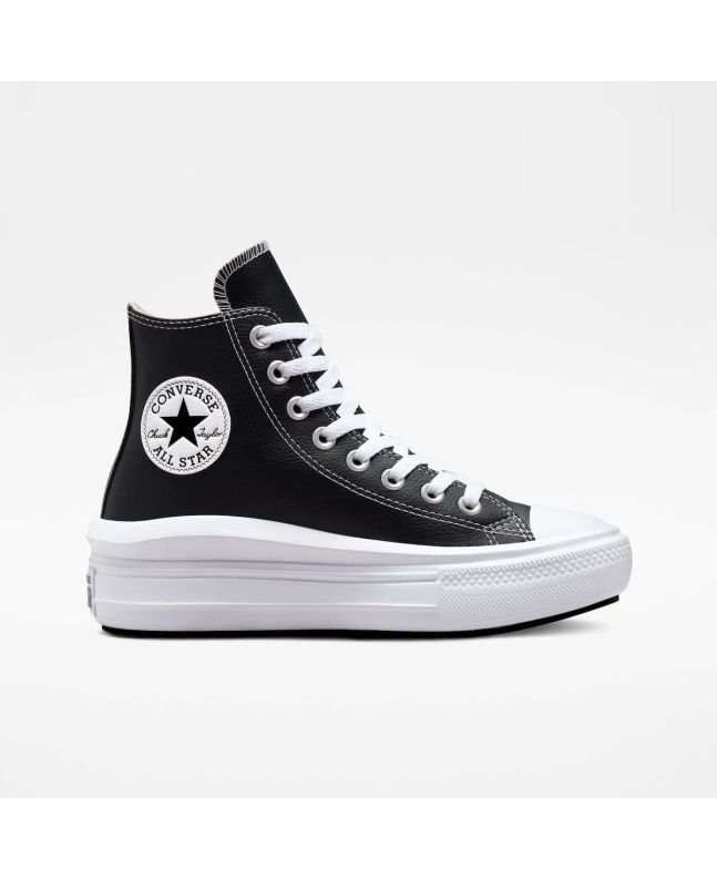 Muévete cómodamente sin parar con las Zapatillas de plataforma Converse Chuck Taylor All Star Move Foundational Leather High Top en tono negro y blanco.