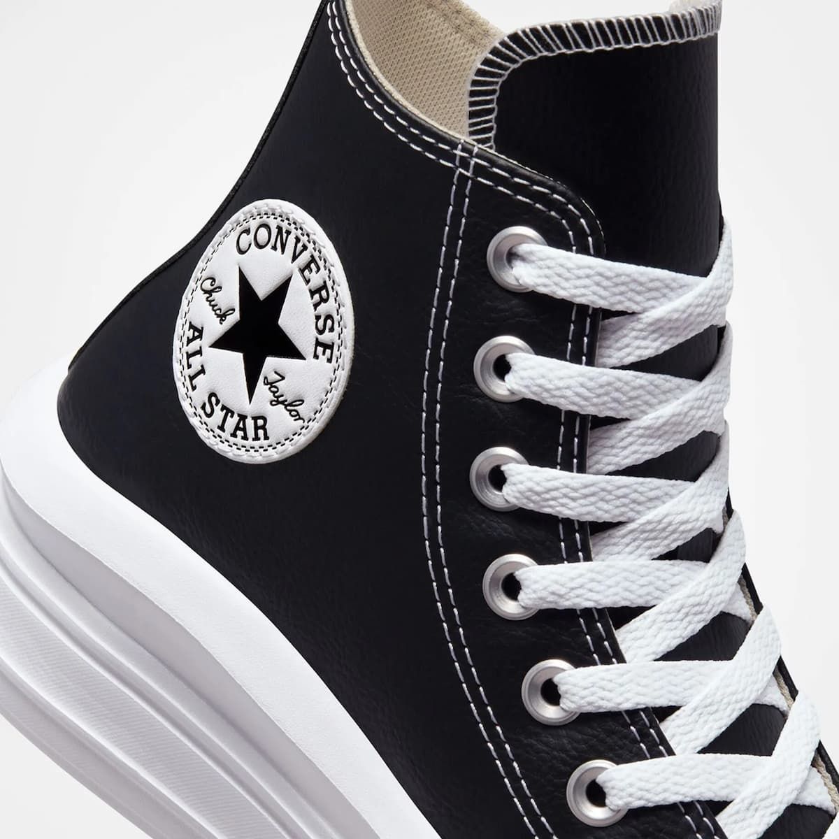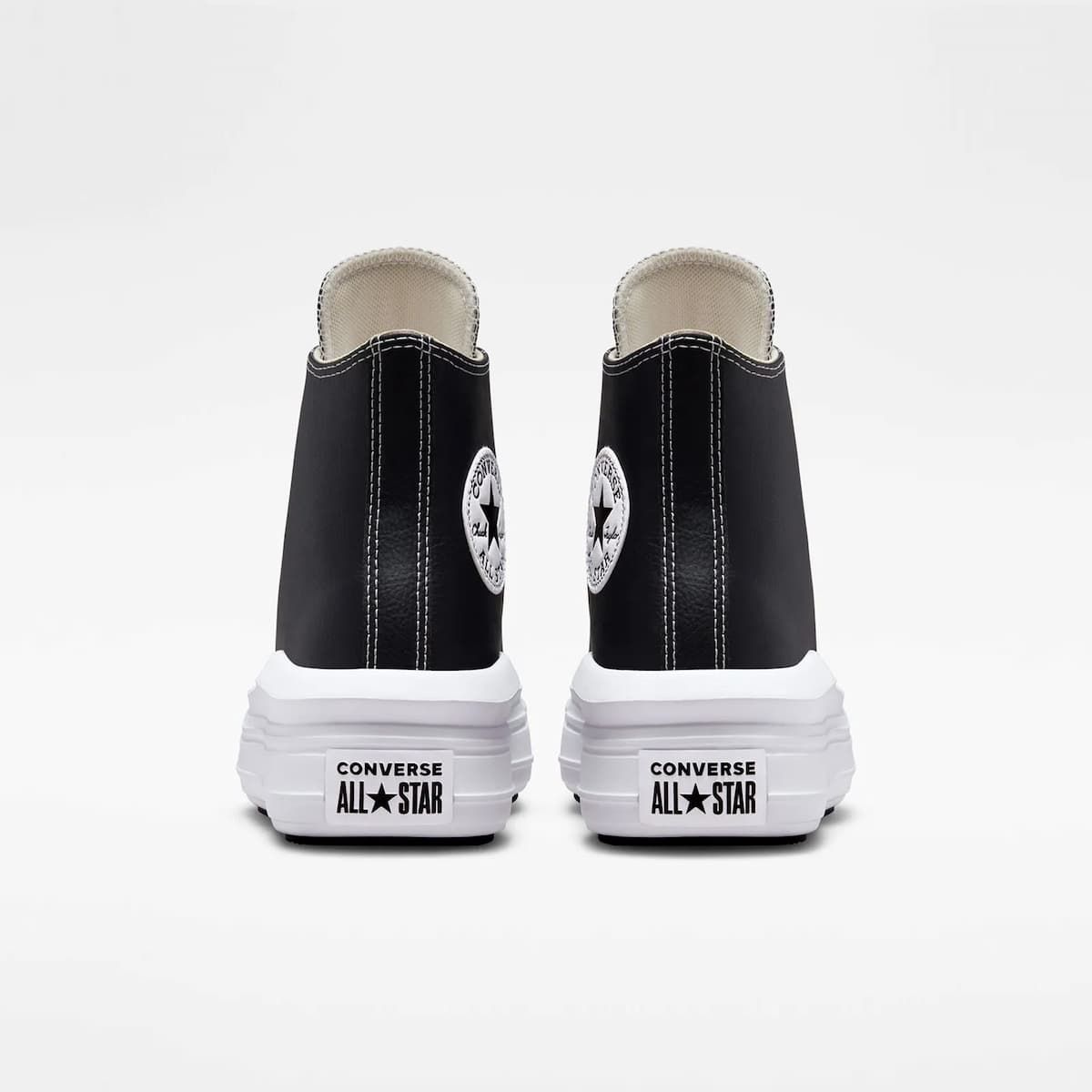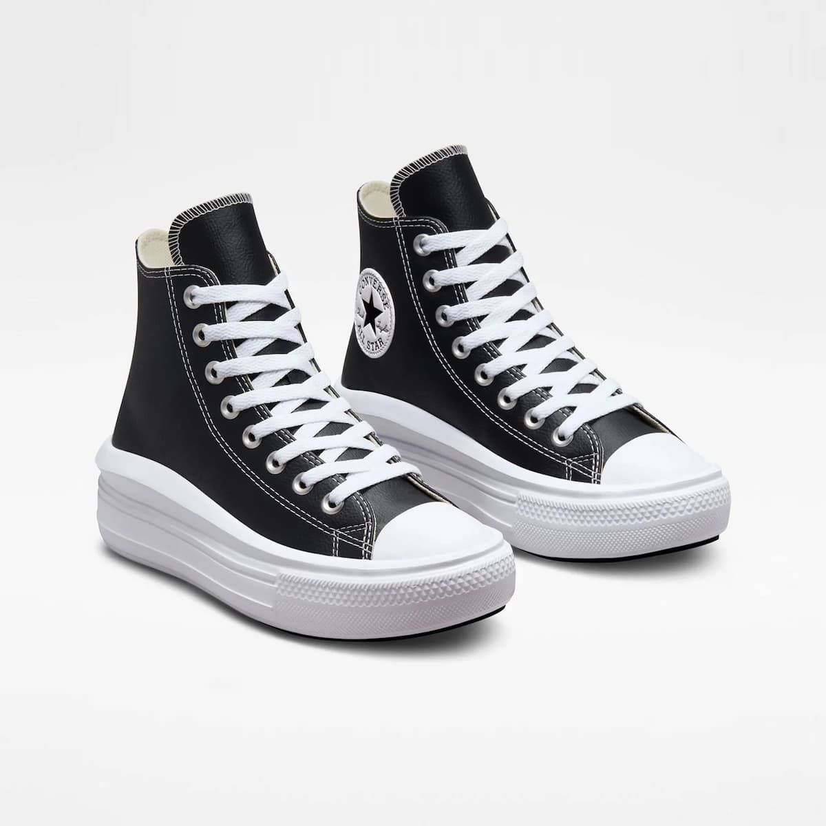 Muévete cómodamente sin parar con las Zapatillas de plataforma Converse Chuck Taylor All Star Move Foundational Leather High Top en tono negro y blanco.