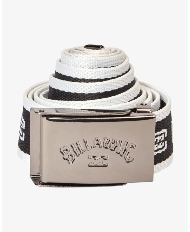 Este cinto masculino negro con impresión Billabong en blanco, cuenta con tallla ajustable, 35mm de ancho, 110cm de largo, cierre de hebilla metálica de clip, punta metálica, hebilla con abrebotellas en la parte posterior y grabado en relieve Billabong tanto en la hebilla como en la punta.