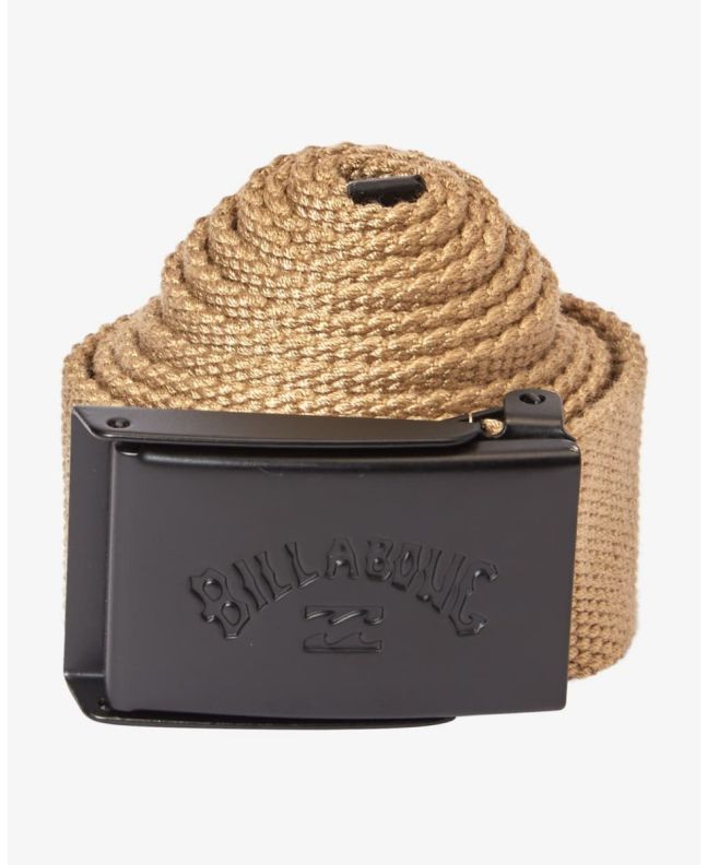 Este cinto masculino marrón de talla ajustable cuenta con 35mm de ancho, 110cm de largo, cierre de hebilla metálica de clip, punta metálica, hebilla con abrebotellas en la parte posterior y grabado en relieve Billabong tanto en la hebilla como en la punta.