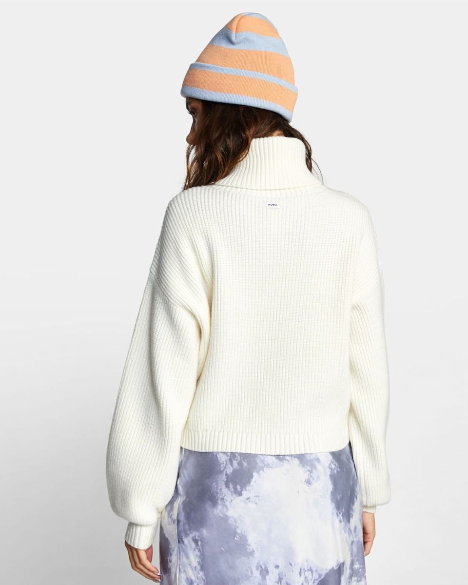 Este suéter de ajuste relajado cuenta con cuello tortuga doblado, mangas globo, y una etiqueta con el logo de RVCA cosida en la espalda