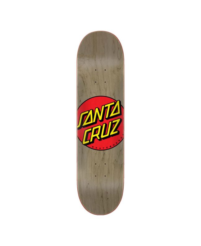 La tabla de skate Classic Dot 8.375" x 31.83" marrón de Santa Cruz ha sido fabricada con 7 láminas de madera de arce norteamericano prensadas individualmente usando epoxi para lograr un deck receptivo con un pop de gran duración, así como un cóncavo y kick consistentes.