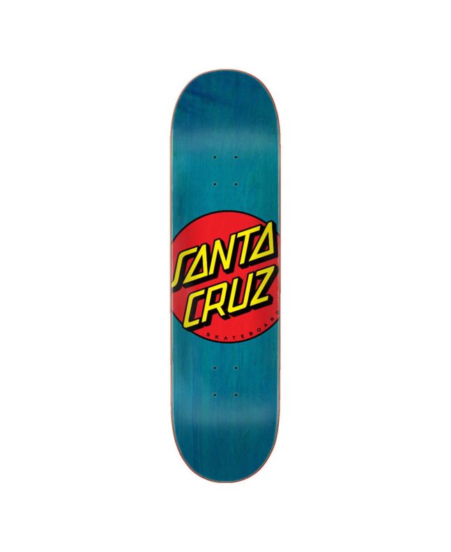 La tabla de skate Classic Dot 8.5" x 32.2" azul de Santa Cruz ha sido fabricada con 7 láminas de madera de arce norteamericano prensadas individualmente usando epoxi para lograr un deck receptivo con un pop de gran duración, así como un cóncavo y kick consistentes.