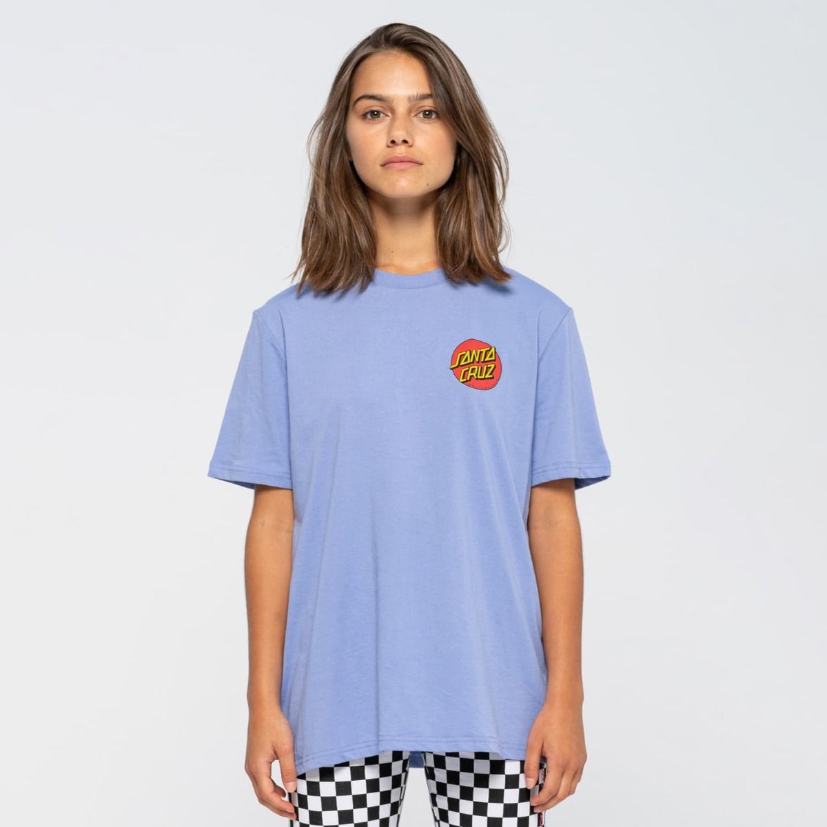 La camiseta de manga corta para mujer Classic Dot Chest en azul (Iris Blue) de Santa Cruz ha sido confeccionada con algodón 100% (160gsm).