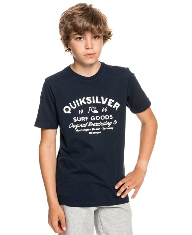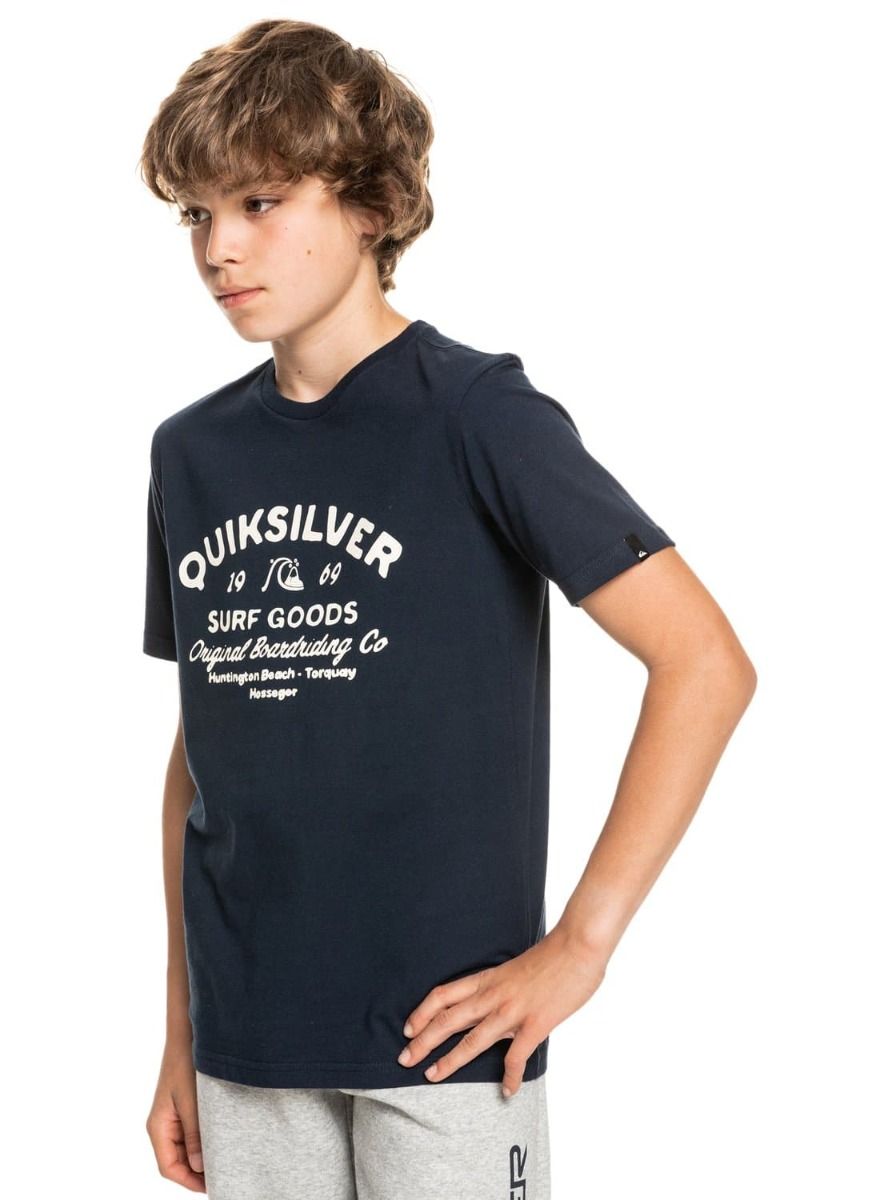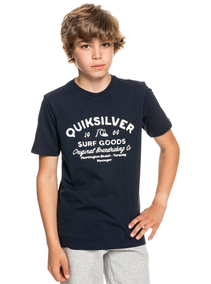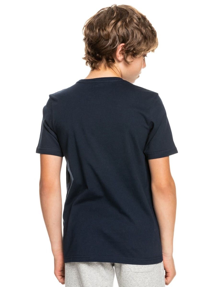 La camiseta de manga corta para chicos Closed Tions de Quiksilver en color azul marino (Navy Blazer) ha sido confeccionada con tejido punto jersey de algodón ligero.