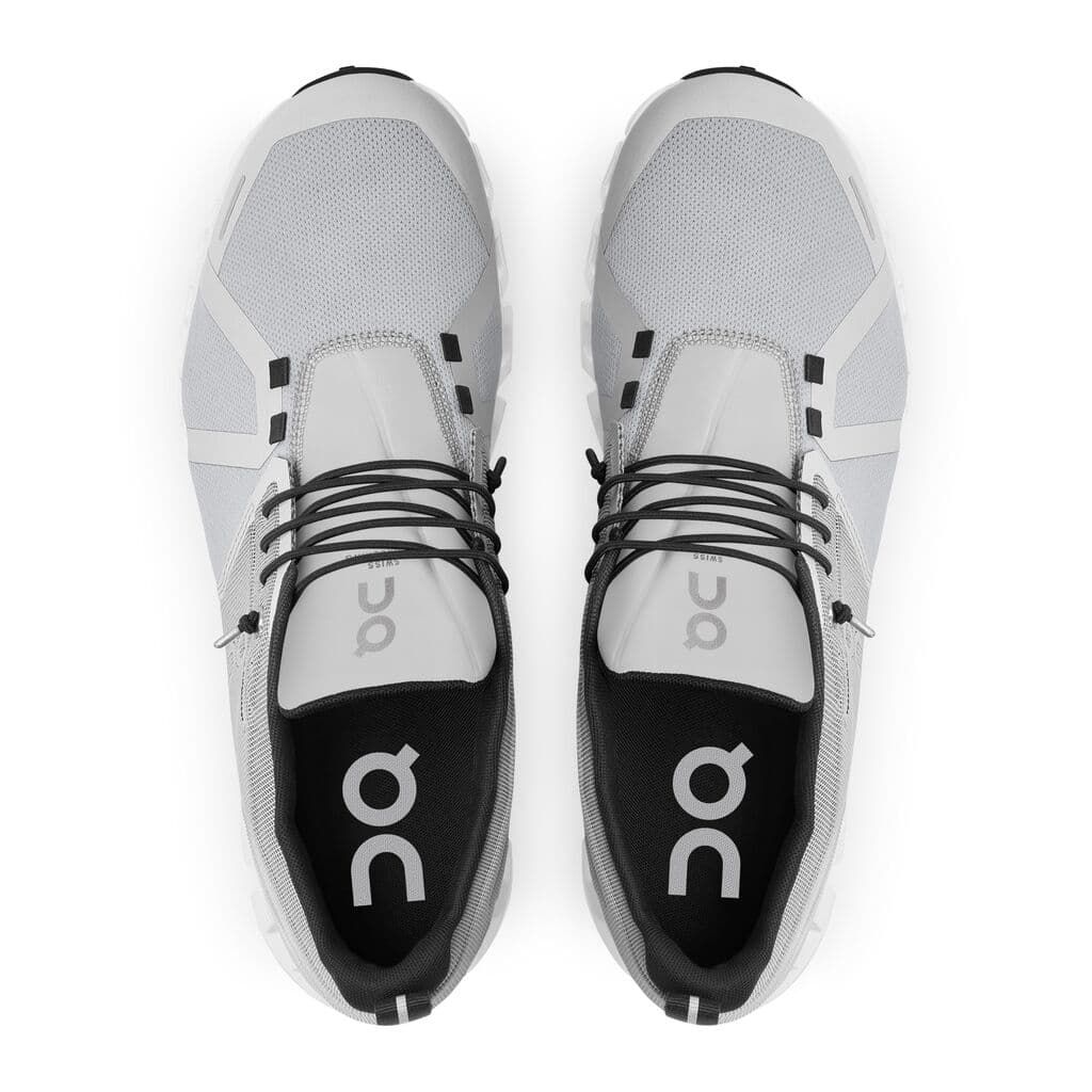 Las zapatillas para hombre Cloud 5 Waterproof en gris y blanco (Glacier-White) de On Running han sido fabricadas con materiales reciclados.