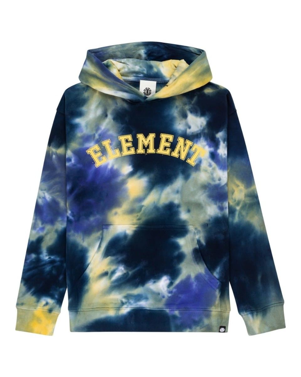 Este hoodie de corte relajado casual y cómodo cuenta con capucha, un amplio bolsillo tipo canguro, punto canalé en puños y parte inferior, estampado Tie Dye y el logo de Element serigrafiado en la parte delantera.