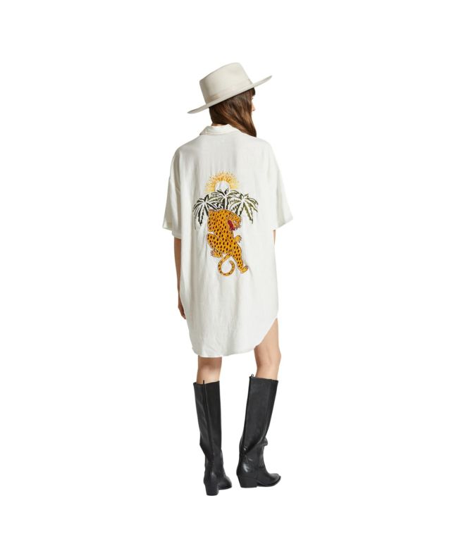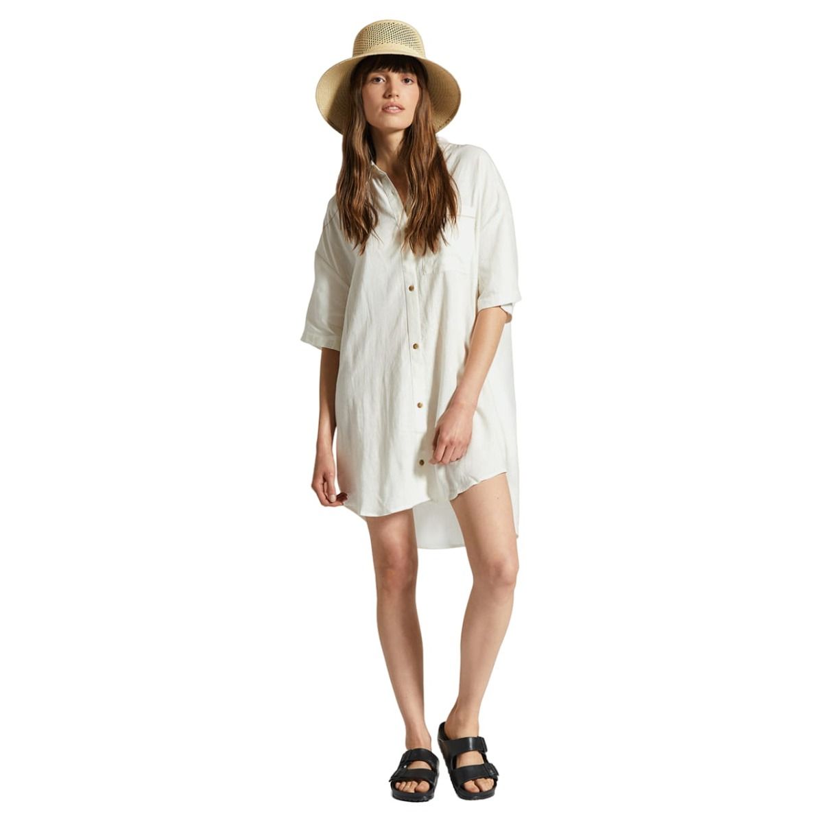 El vestido tipo camisa para mujer Condesa Linen Shirtdress en tono blanco hueso (Off White) de Brixton está confeccionado con tejido ligero en mezcla de 55% lino y 45% rayón.