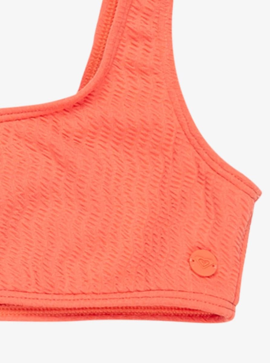 Bikini bralette para niña Roxy Girl, color naranja Emberglow. Cómodo, resistente y con tirantes ajustables. Ideal para días de playa y piscina.