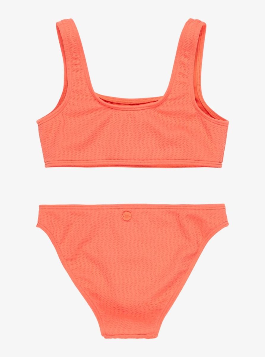 Diseñado para las pequeñas que aman moverse con libertad, este bikini bralette Roxy Girl Lagos RG en tono anaranjado (Emberglow) ofrece un look moderno y alegre con toda la comodidad que necesitan. Su tono naranja vibrante y su textura suave con relieve lo convierten en un conjunto único para las escapadas al mar o tardes en la piscina.