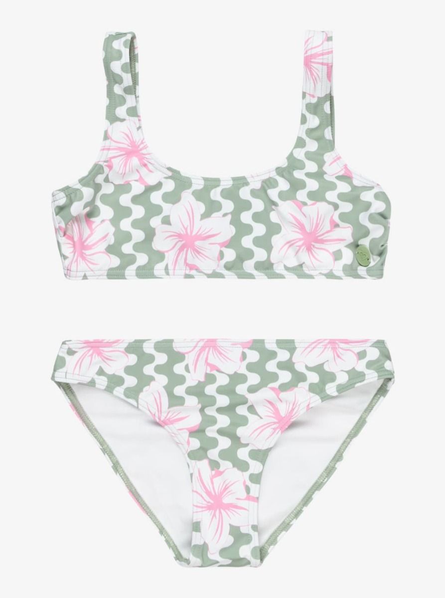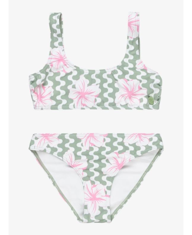 Conjunto de bikini bralette Roxy Girl Party Waves Verde (6-16 años)