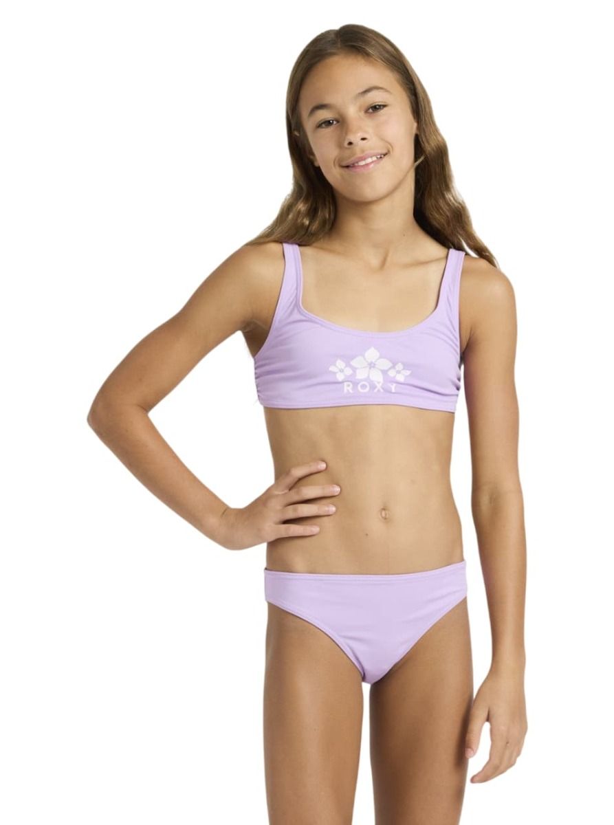 Conjunto de bikini bralette Roxy Girl Solid Active Crocus Petal (6-16 años)