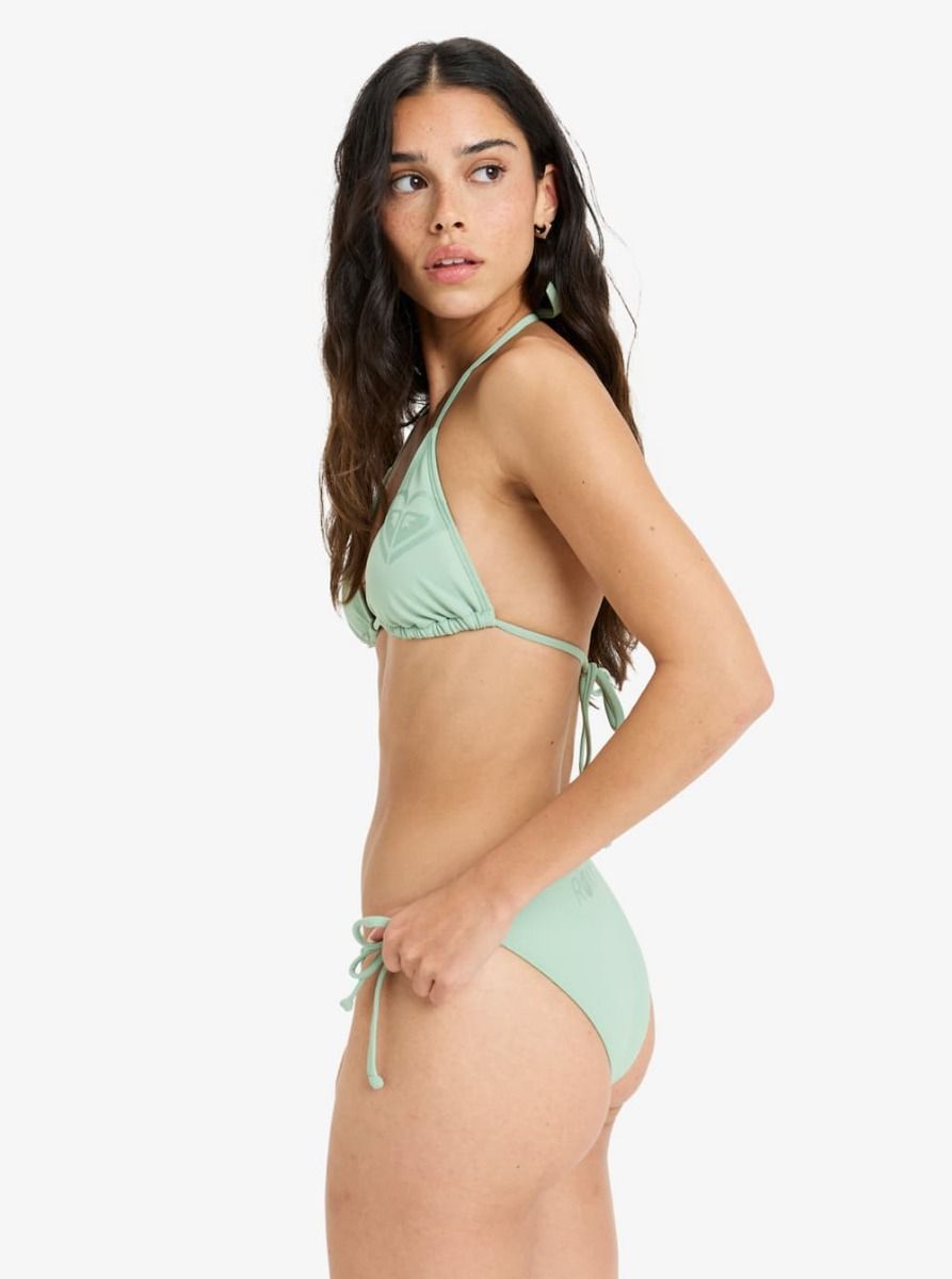 Conjunto de baños 2 piezas Roxy Beach Classics verde basil une diseño triangular clásico, tirantes ajustables y tejido reciclado para una experiencia surfera con conciencia ecológica.