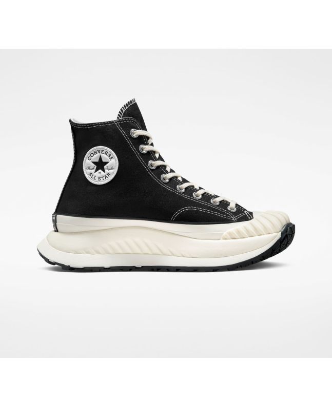 Las zapatillas de plataforma Chuck 70 AT-CX Hi negras Unisex tienen la estrella Converse All Star en el talón.