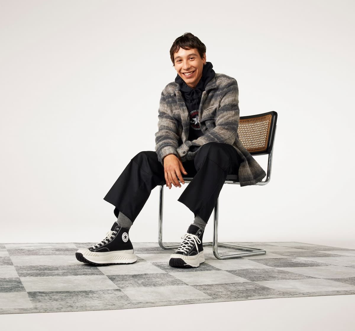 Las Chuck 70 AT-CX Hi Black-Egret-Black combinan detalles clásicos de las Chuck 70 como el parche de estrella en el tobillo, los dos agujeros con borde metálico en la parte inferior y cordones de algodón, con una suela exterior de estilo futurista y agarre en forma de diamante para lograr mayor tracción.