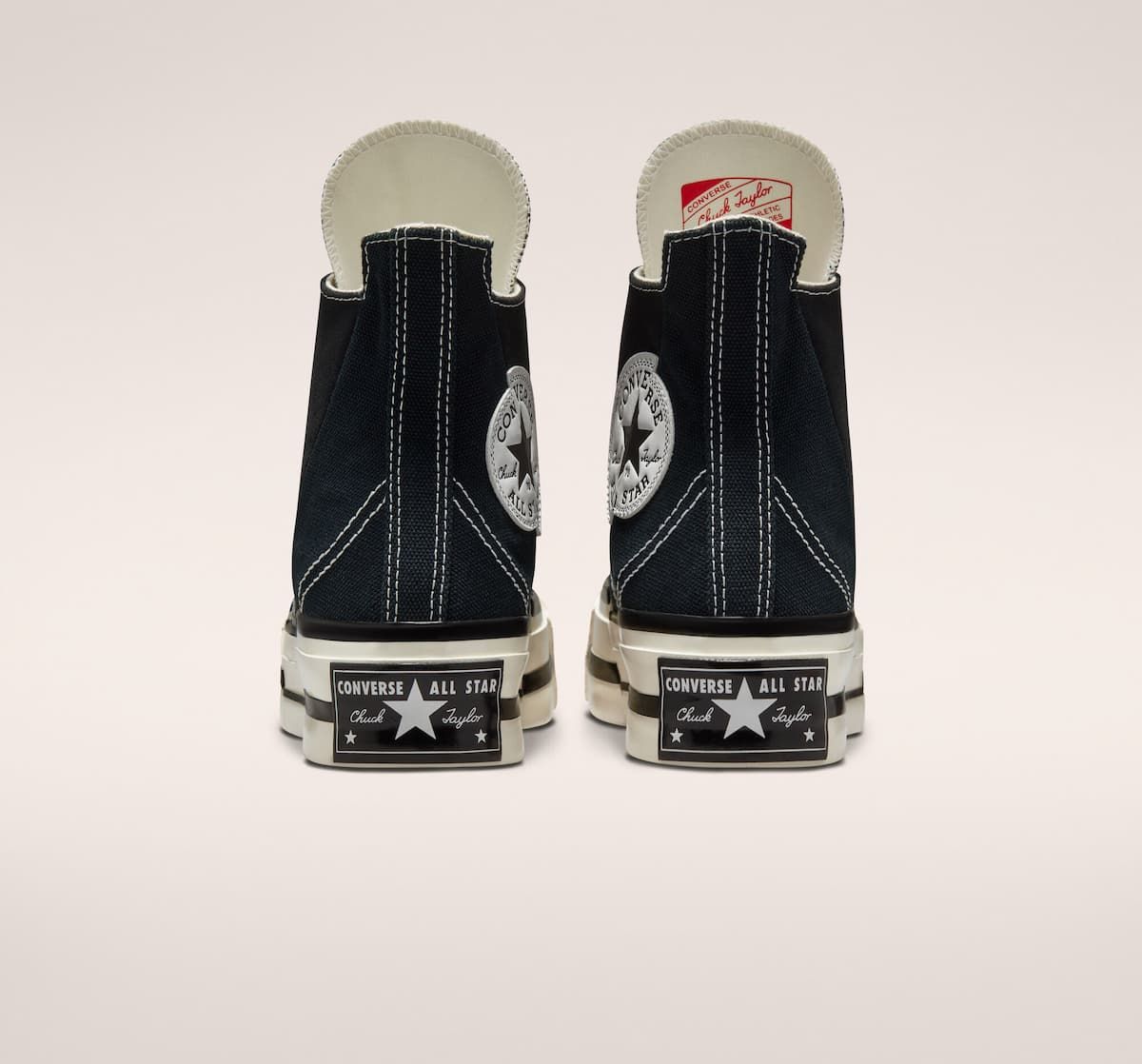 Las zapatillas de plataforma Chuck 70 Plus negras Unisex tienen la estrella Converse All Star en el talón.