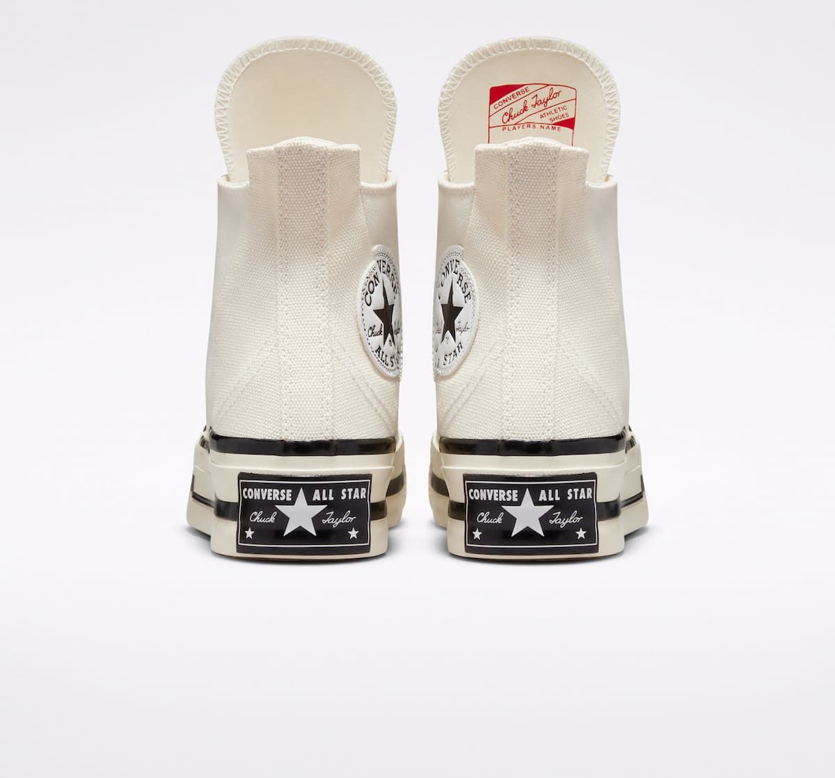 Las zapatillas de plataforma Chuck 70 Plus Blancas Unisex también están disponibles en color negro (Black-Egret-Black).