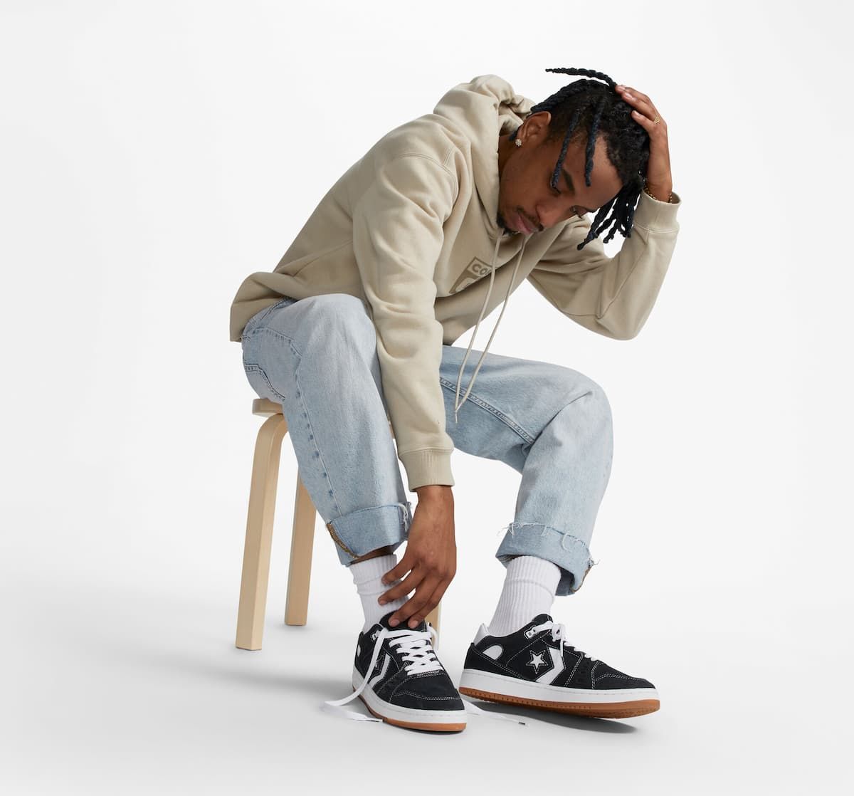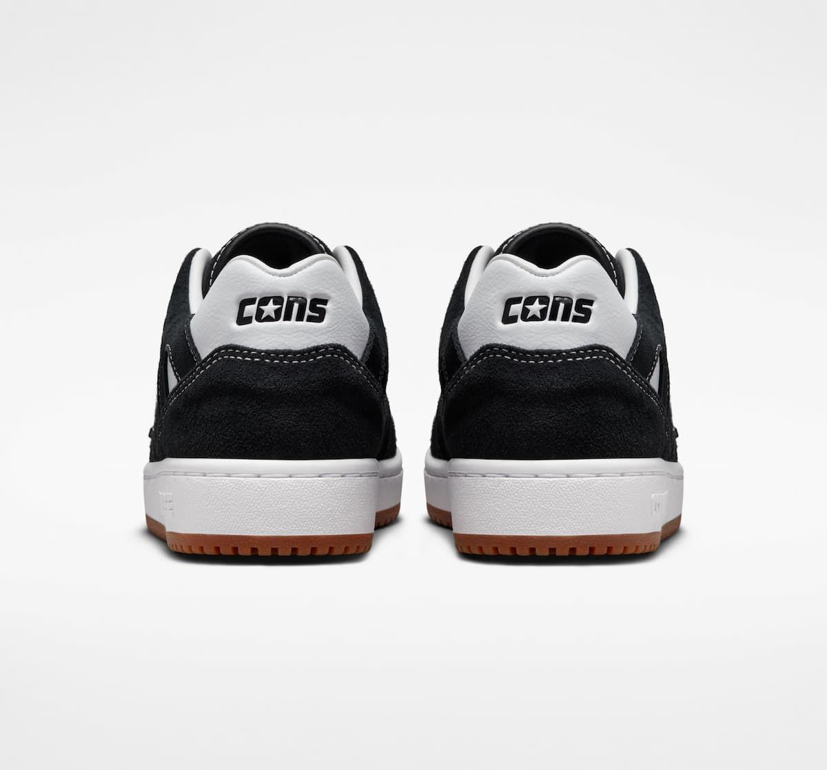 Las Converse CONS AS-1 Pro negras y blancas cuentan con diseño cupsole con núcleo perfeccionado integrado para un sensación óptima sobre la tabla, perfil bajo para una flexibilidad máxima, parte superior de ante, almohadillas de goma visibles en la zona superior para mayor durabilidad, cordones planos blancos de algodón, plantilla de espuma CX para mayor amortiguación y protección contra impactos, suela exterior de goma con patrón de espiga para una tracción y agarre excelentes, el icónico logo de estrella y galón en el lateral, grabado Alexis Sablone en relieve en la lengüeta y el logo de CONS estampado en el talón.