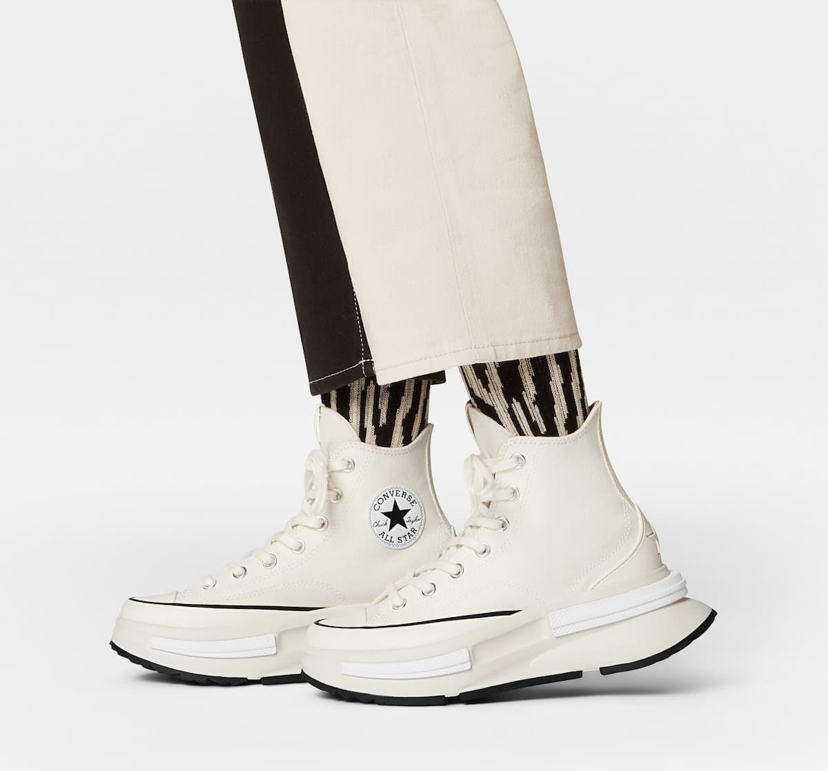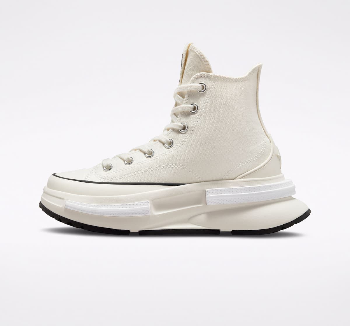 Las zapatillas Run Star Legacy CX High Top de Converse en color blanco hueso, negro y blanco (Egret-Black-White) están confeccionadas con lona.