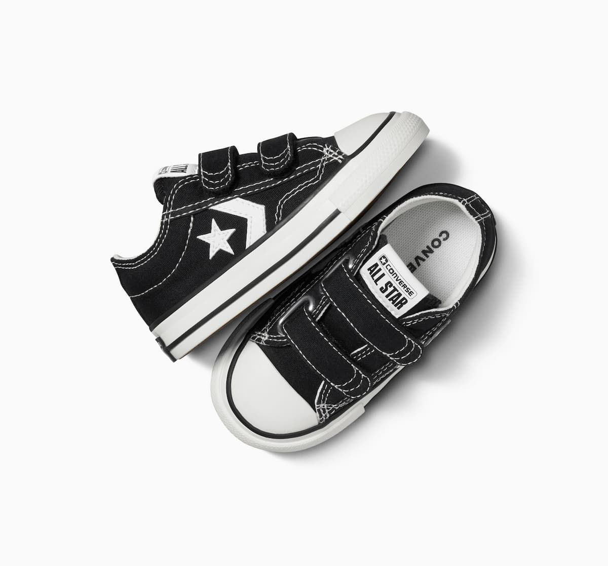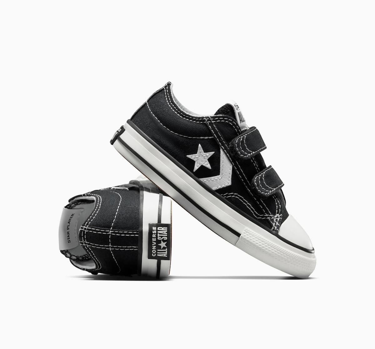 Con las zapatillas de velcro Converse Star Player 76 Foundational Canvas Toddler Low Top negras para niños/as de 1 a 4 años no solo lucirán geniales, sino que también estarán cómodos durante todo el día. ¡No dejes pasar la oportunidad de agregar un toque fresco y vintage al look de los más pequeños!