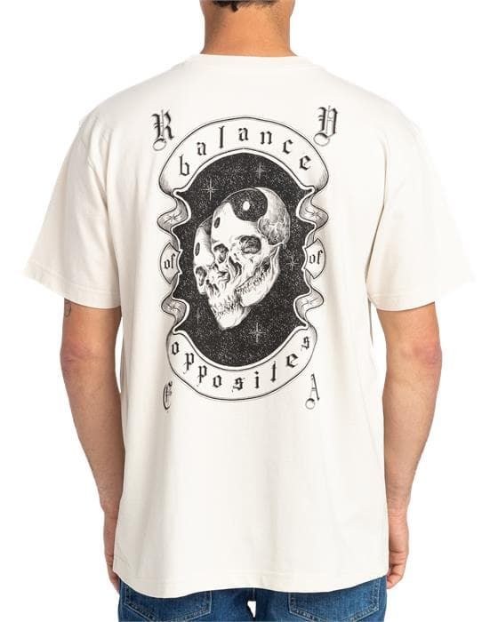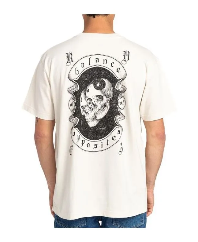 La camiseta de manga corta para hombre Cosmic Crew en color blanco hueso (Silver Bleach) de Rvca está confeccionada con 100% algodón peinado.