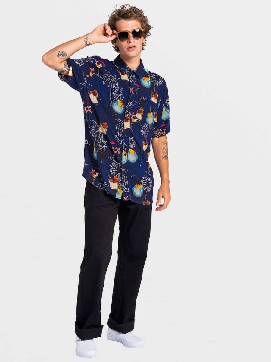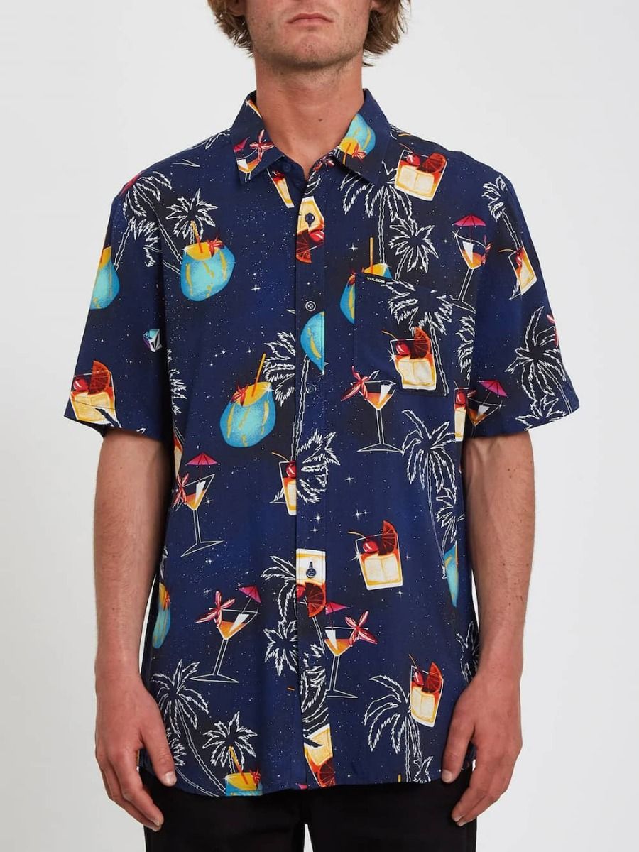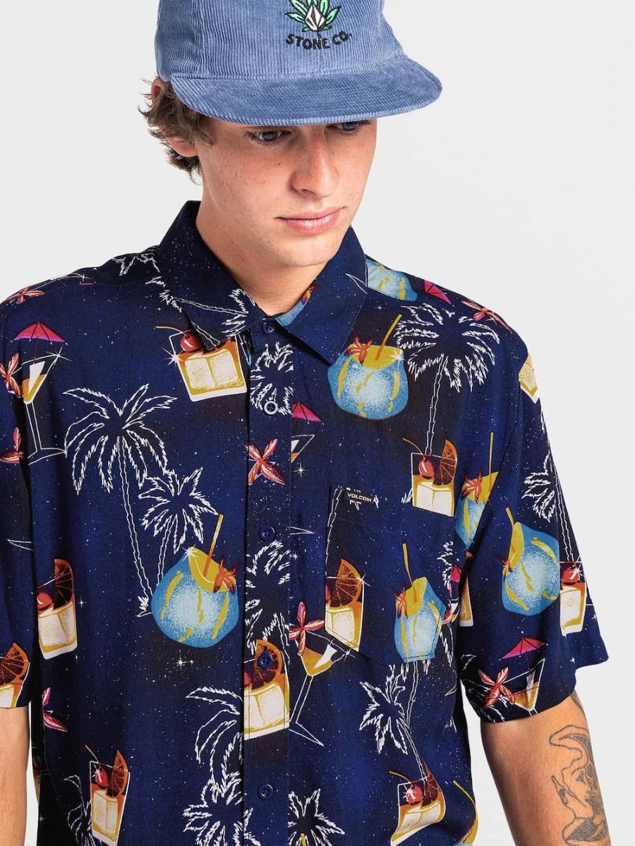 La camisa de manga corta para hombre Cosmic Vaca azul de Volcom ha sido confeccionada con 100% viscosa.