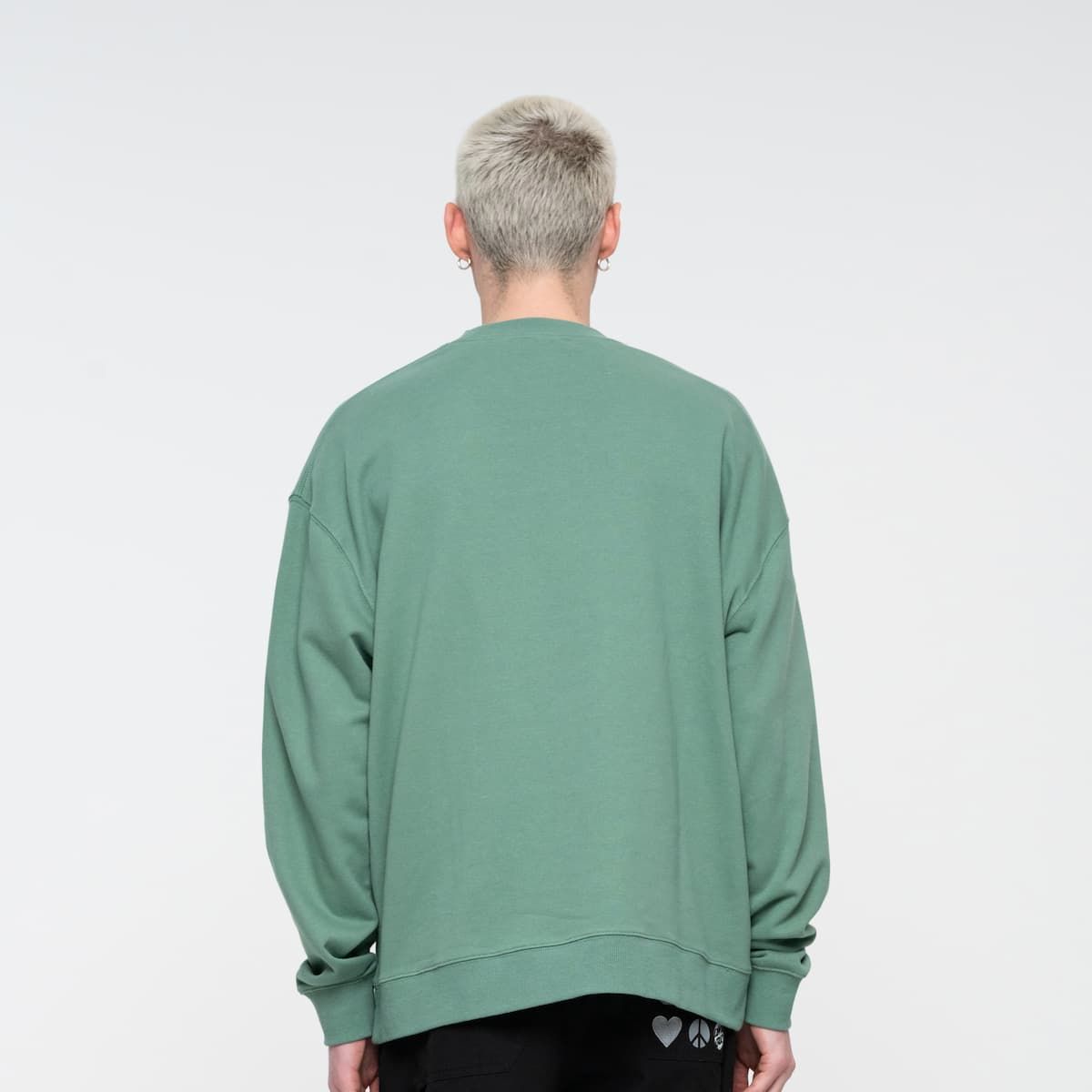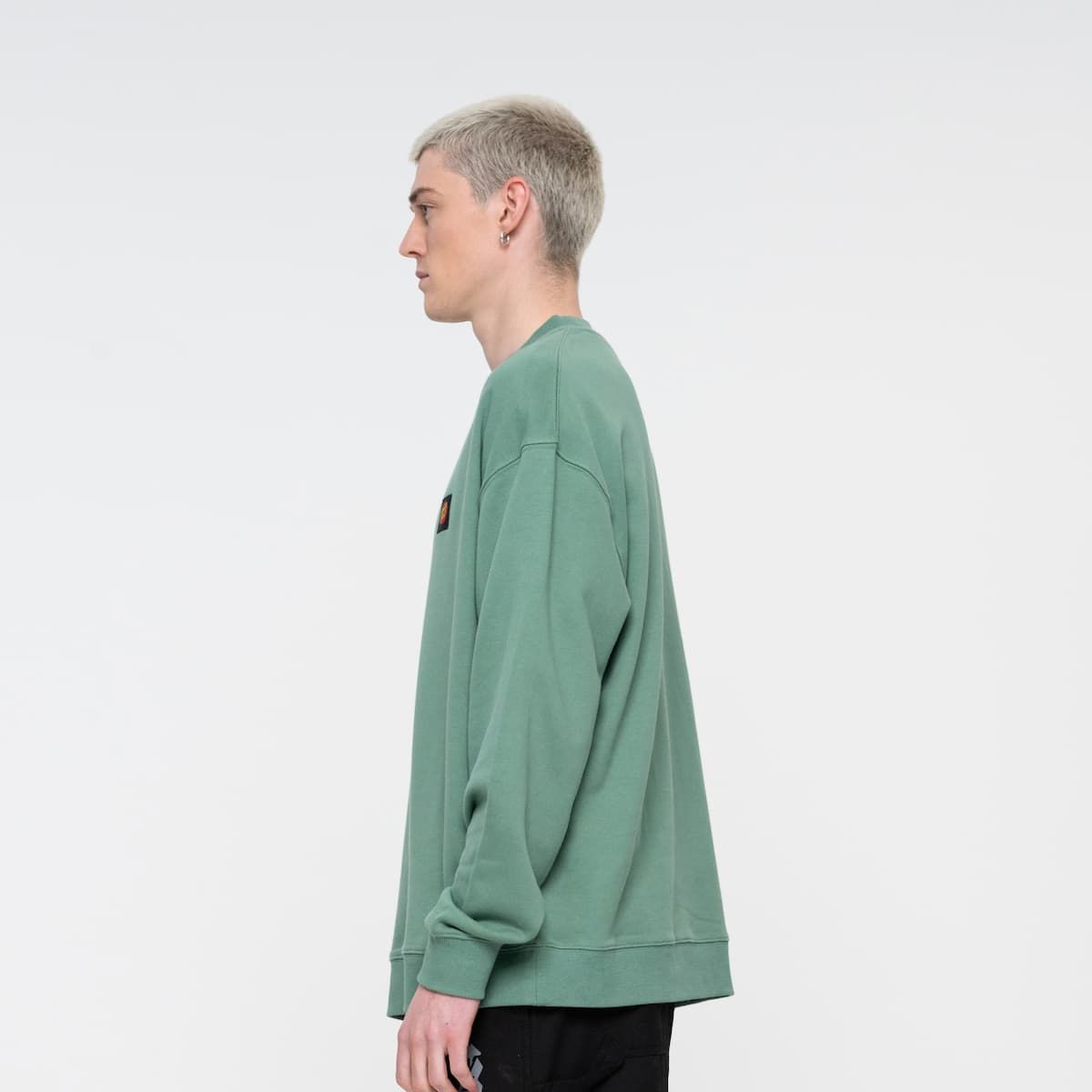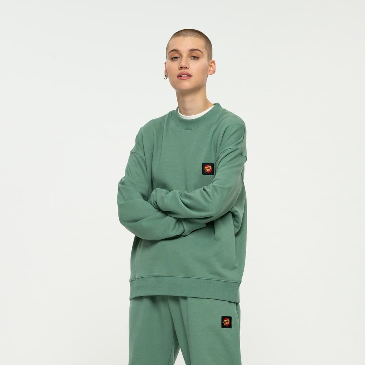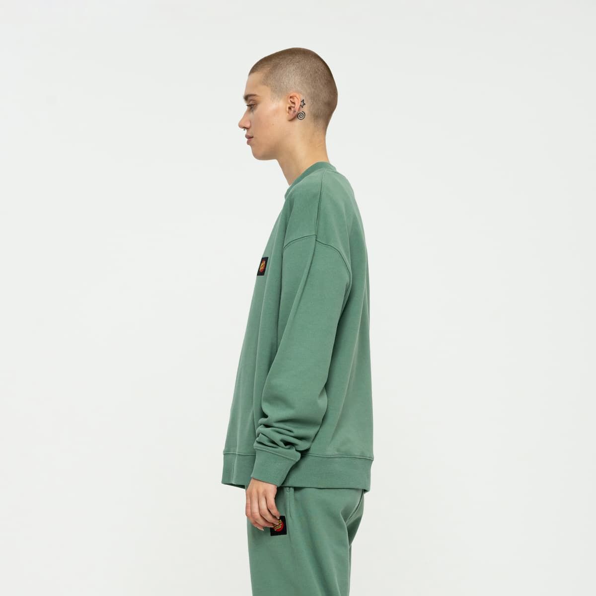 La sudadera sin capucha para hombre y mujer Classic Label en verde (Mineral Green) de Santa Cruz está confeccionada con 100% algodón orgánico (330gsm).