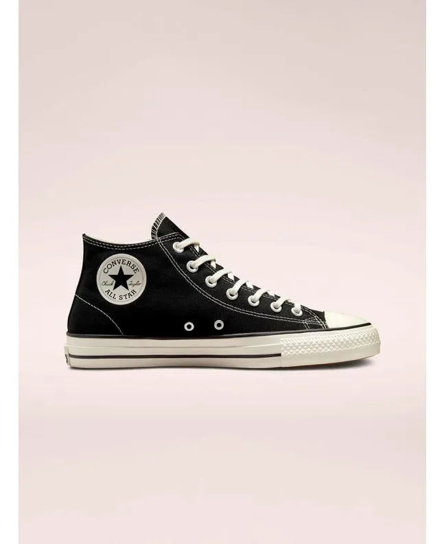 Las zapatillas CONS Chuck Taylor All Star Pro Cut Off Mid top en color negro (Black-Black-Egret) de Converse están confeccionadas con lona reciclada y goma.