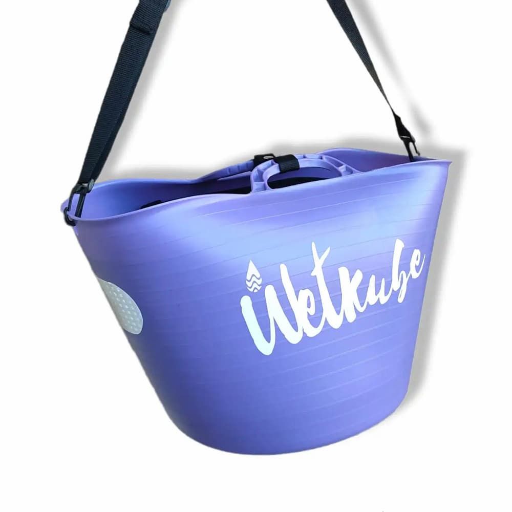Con este cubo de diseño esgonómico, con asas y bandolera, seguro y muy fácil de transportar, cuenta con a un cubo interno más pequeño, agujerado y elevado sobre el fondo, que facilita el secado rápido de trajes de surf y todo tipo de neoprenos.