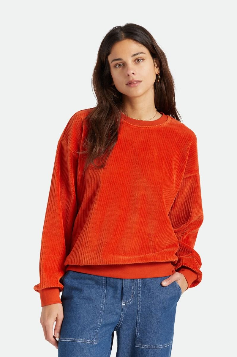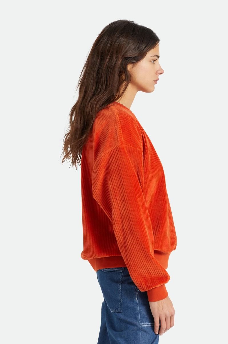 La sudadera sin capucha para mujer Dazed Crew de Brixton está confeccionada con mezcla de terciopelo acordonado, poliéster, spandex y algodón 280 GSM.