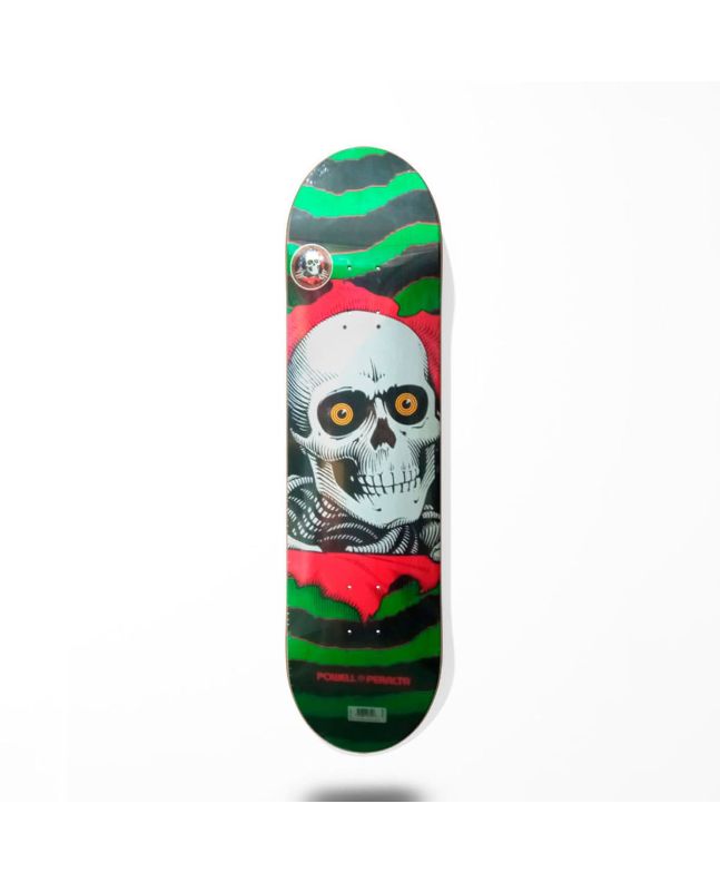 La leyenda del skate revive en una tabla construida para el rendimiento y la durabilidad. La Powell Peralta Ripper Birch 8" en tono verde y rojo (Green Stain-Red) es ideal tanto para skaters que recién comienzan como para quienes buscan una tabla versátil y confiable, con el inconfundible estilo clásico de Powell Peralta.