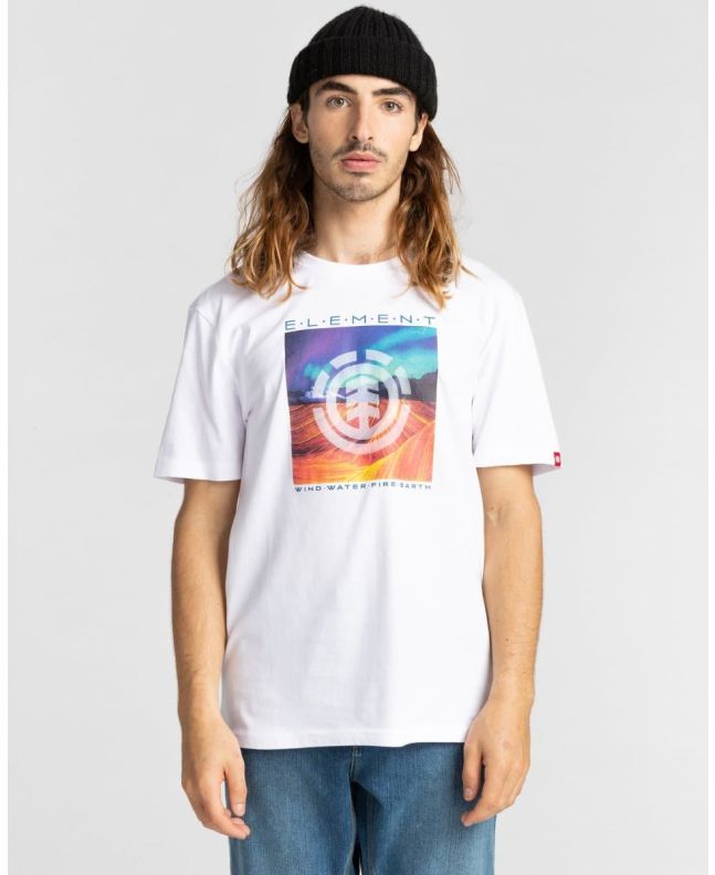 Esta camiseta de corte normal, clásico y cómodo, cuenta con cuello redondo, manga corta, y una ilustración exclusiva con el logo de Element estampado en el frente.