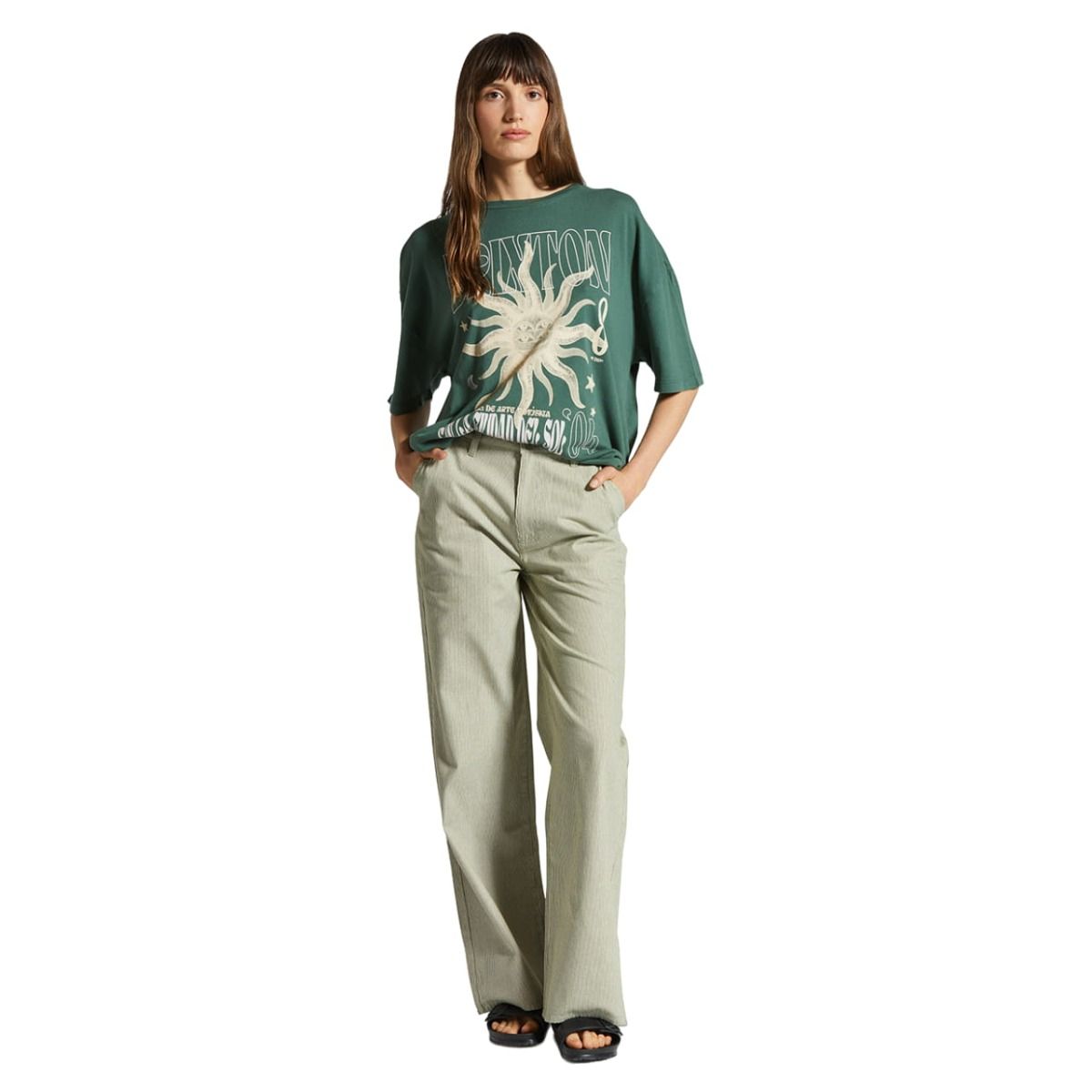 La camiseta oversize de manga corta El Festival Verde para mujer tiene el sello de garantía Brixton.