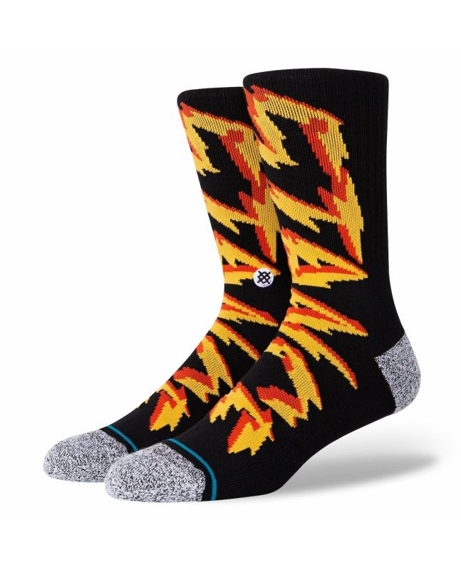 Estos calcetines de corte clásico cuentan con construcción en fibras Infiknit™ anti-roturas y que no se desgarran, altura que llega hasta la mitad de la parte baja de la pierna, estampado Stance "eléctrico", amortiguación moderada en todo el calcetín para un ajuste seguro y mayor protección frente a impactos, soporte para el arco que se complementa con un talón profundo y cierre de la puntera sin costuras para un acabado antifricción.