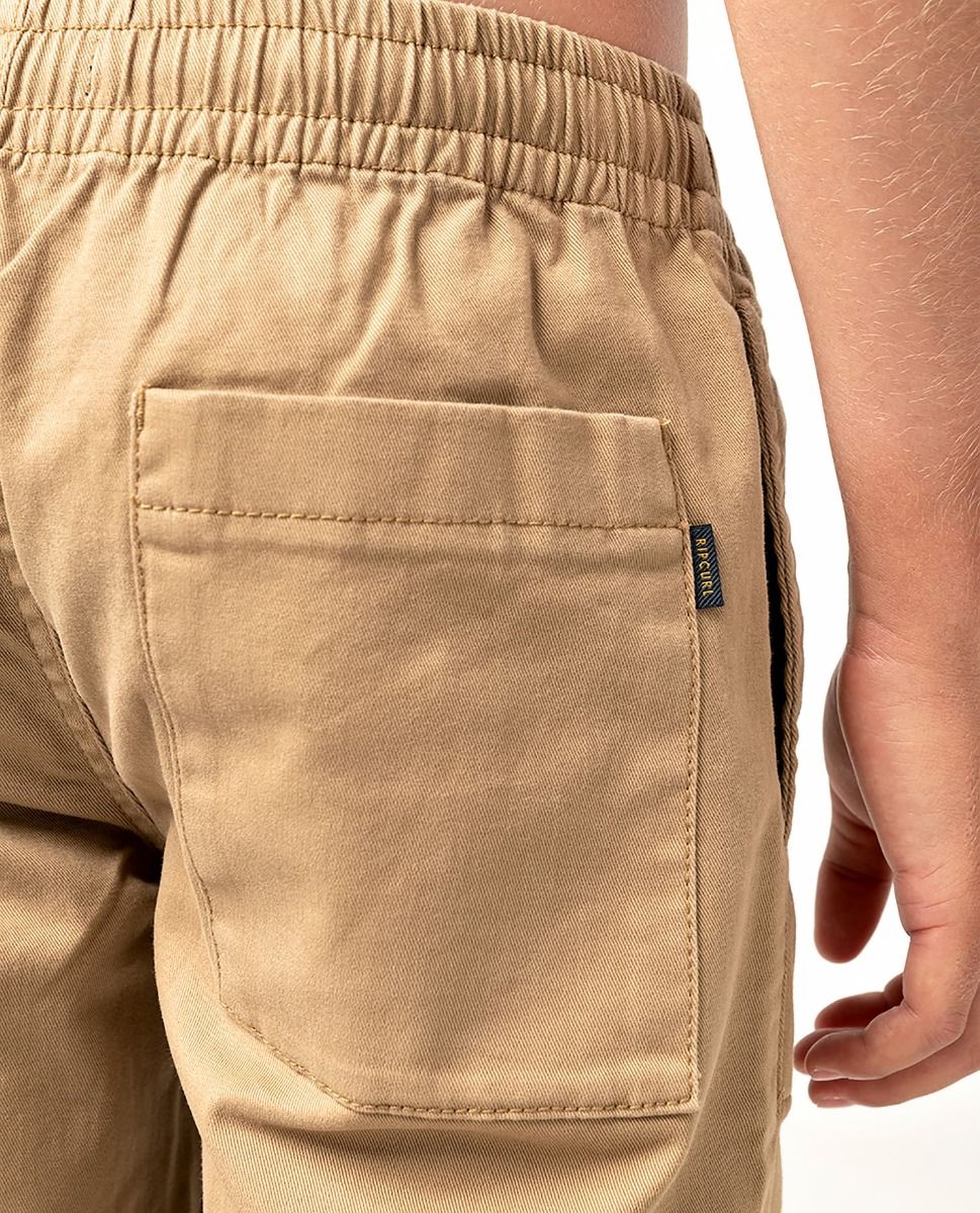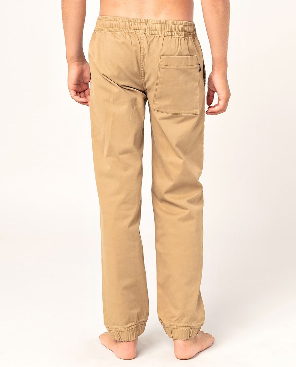 Este pantalón de tipo chino cuenta con dobladillos elásticos, cintura elástica, tejido lavado a la piedra para mayor suavidad y una etiqueta de Rip Curl tejida en el bolsillo delantero izquierdo y posterior derecho.