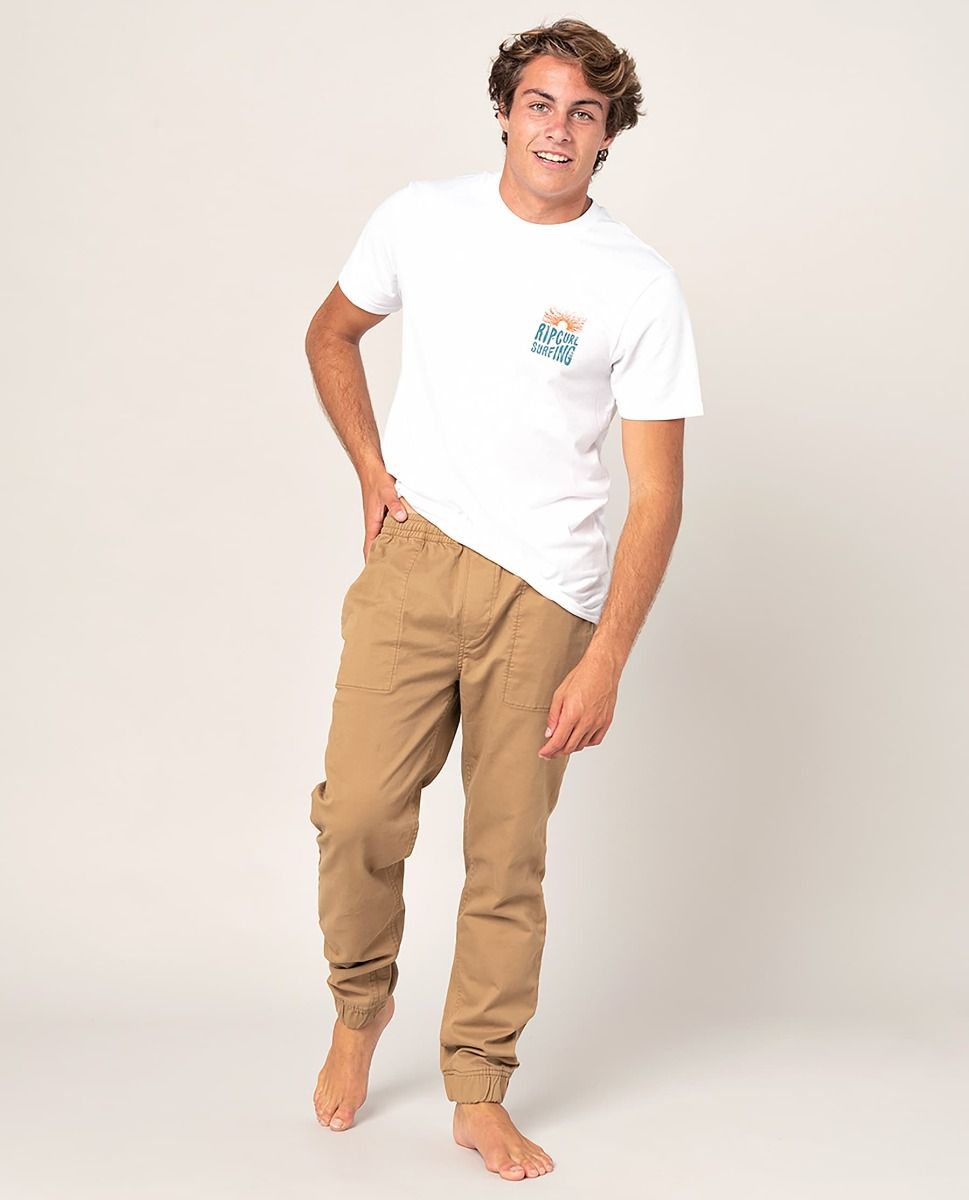 Este pantalón de ajuste recto cuenta con dobladillos elásticos, cintura elástica, cordón de ajuste, tejido lavado a la piedra para mayor suavidad y una etiqueta de Rip Curl tejida en el bolsillo delantero izquierdo y posterior derecho.