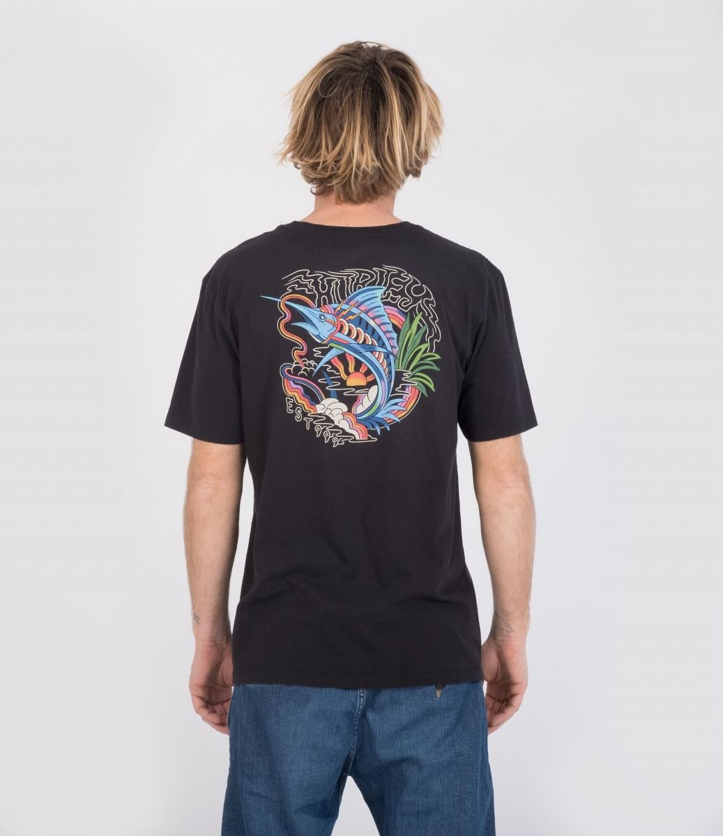Camiseta de manga corta Hurley Everyday Washed Trippy Fish en color negro para hombre